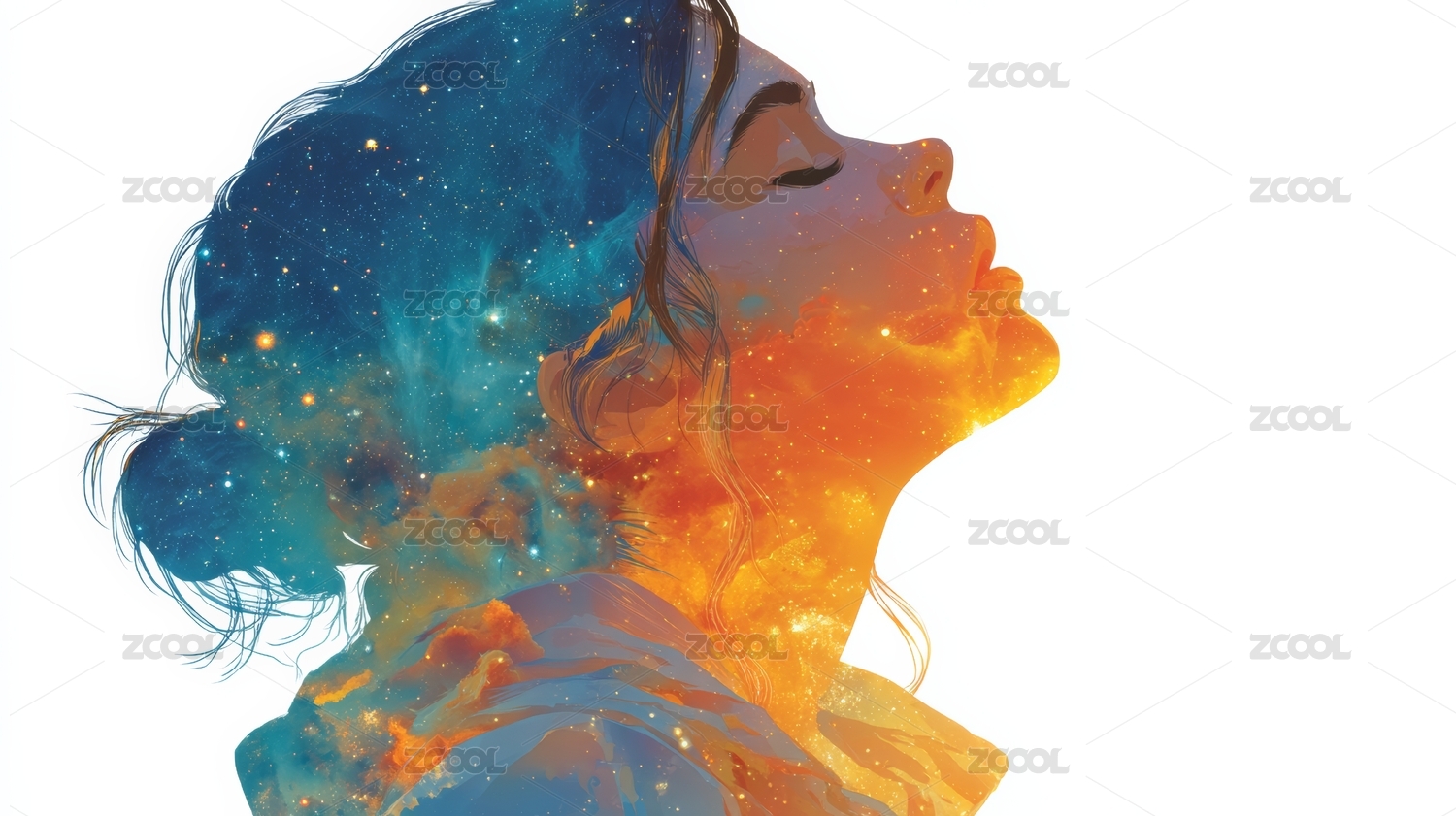 超现实主义银河梦幻璀璨的星云女孩插画