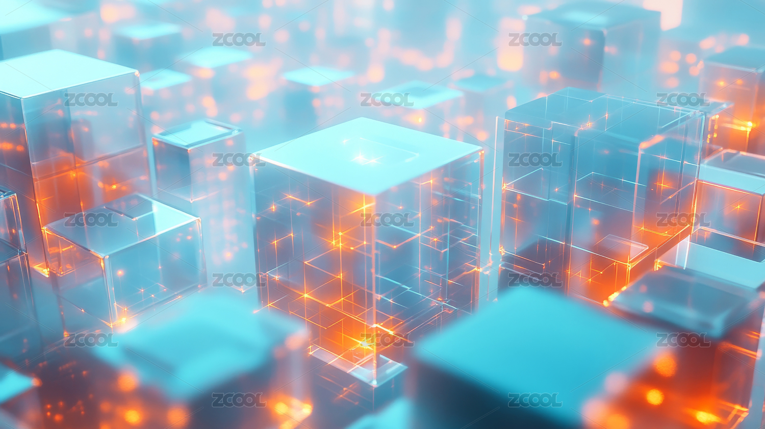 立方体, 空间, 抽象, 橙色, 光线, 未来, 科技, 网络, 数据, 连接