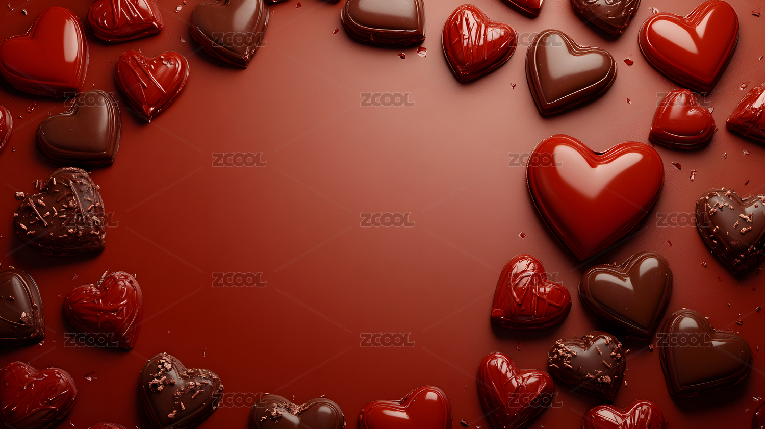 心形巧克力与玫瑰花瓣的甜蜜爱意