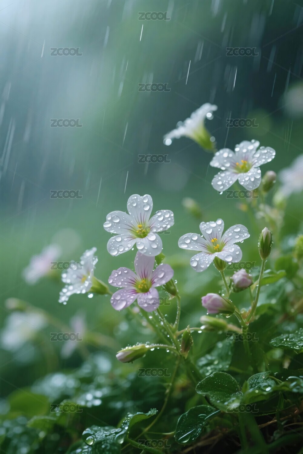 雨中小花绿叶