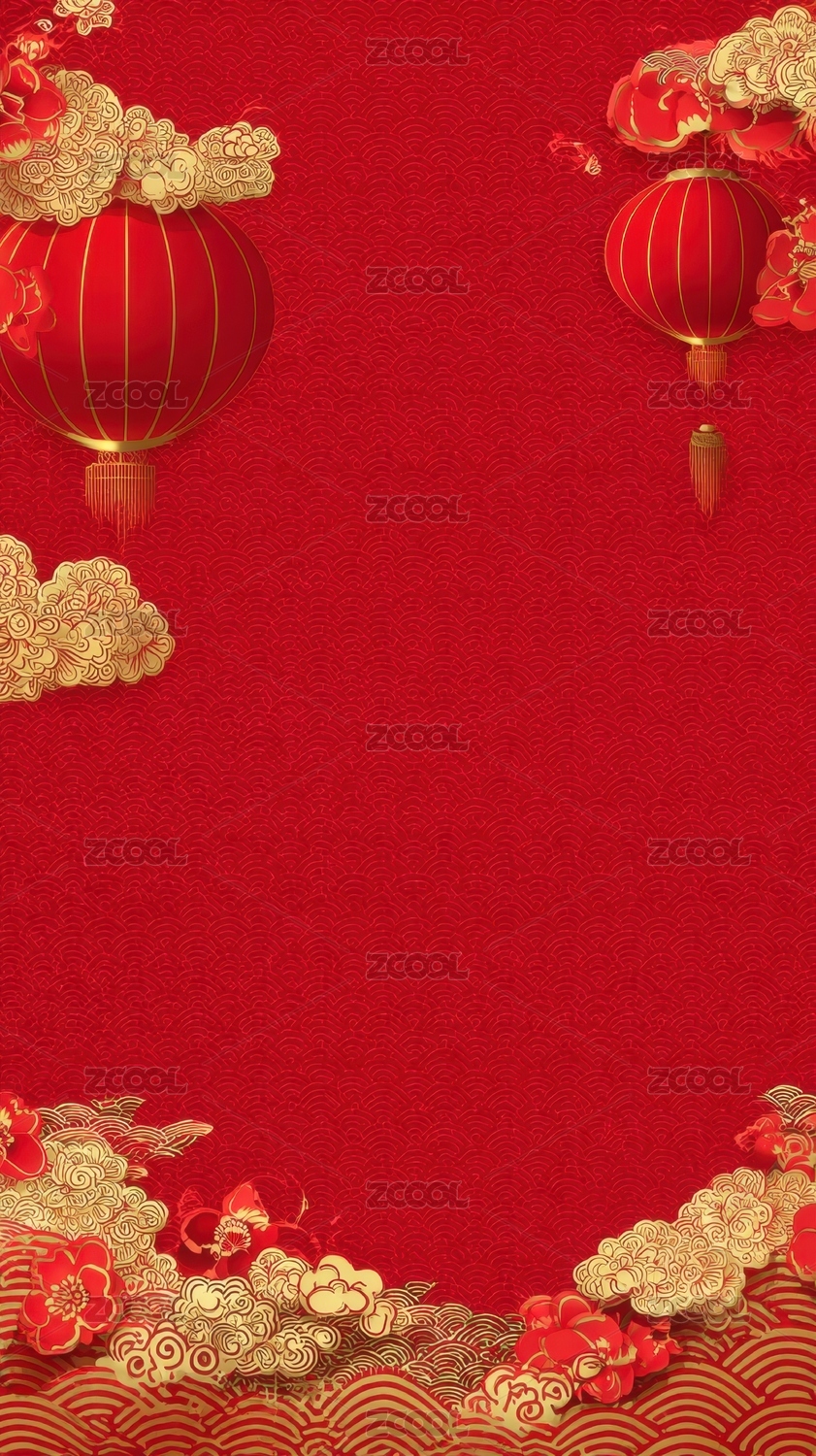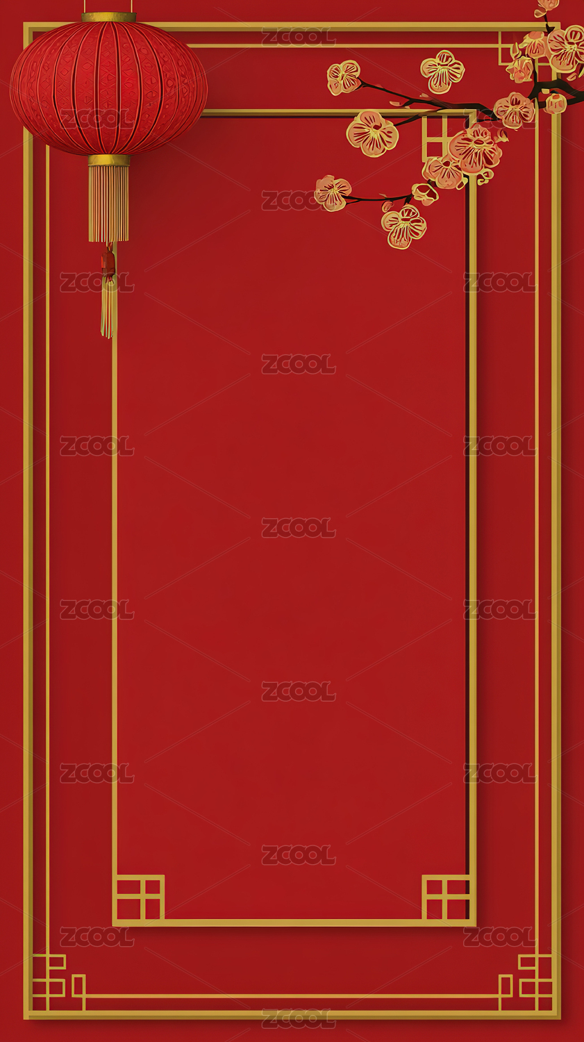 红色,传统,中式,背景,花朵,插画,灯笼,花