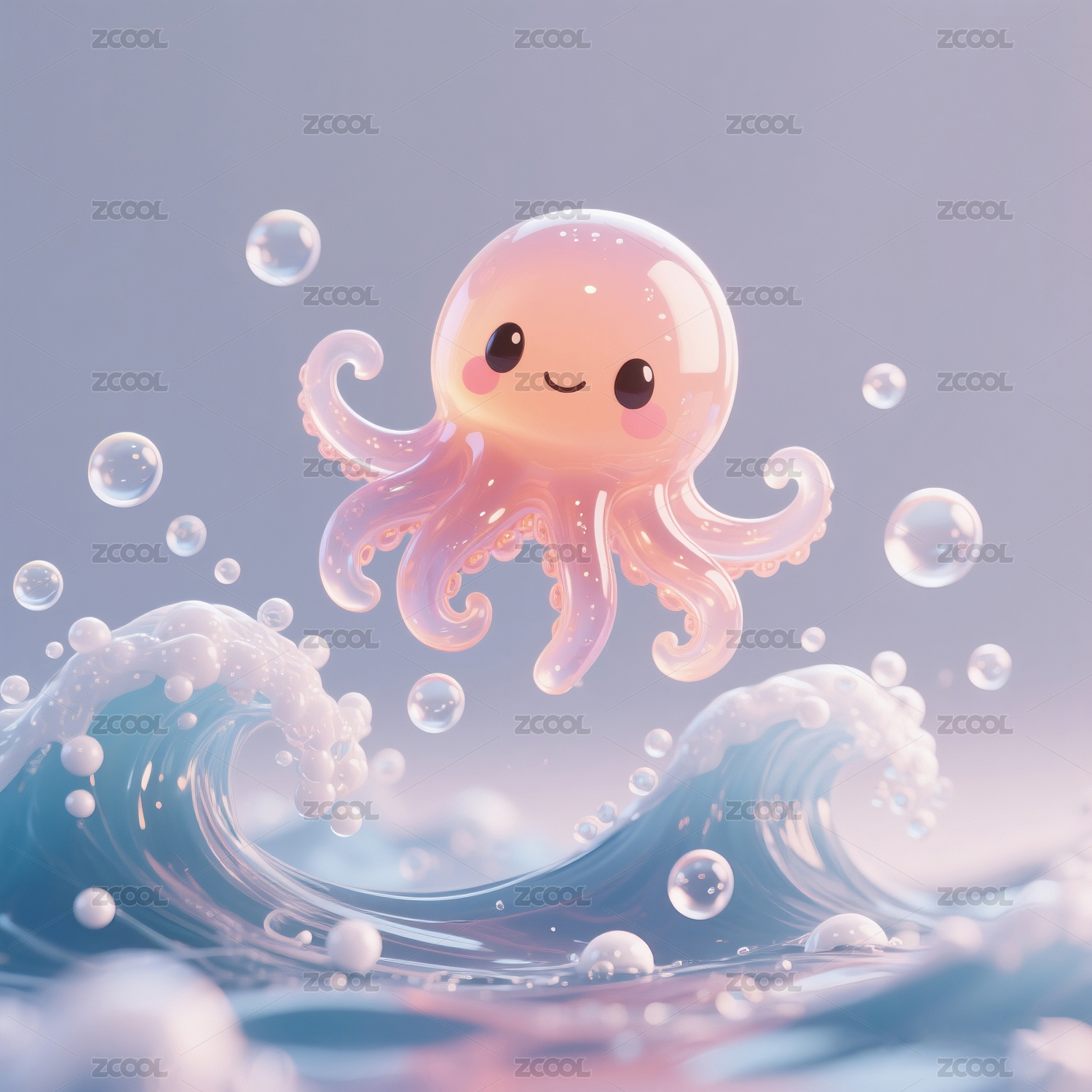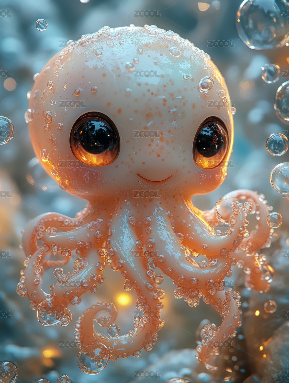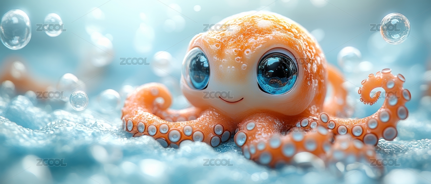 章鱼可爱唯美野生动物3D卡通插画壁纸