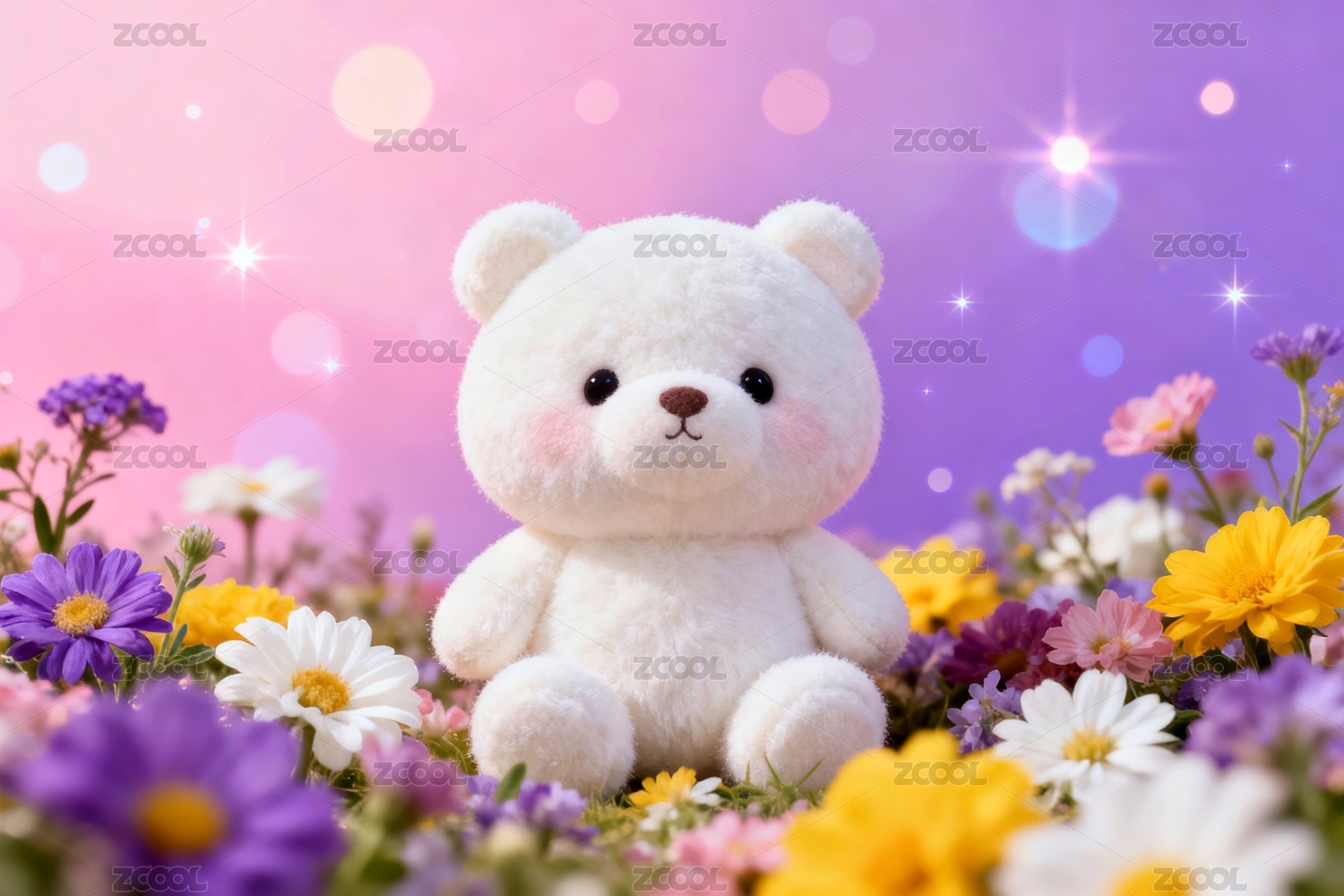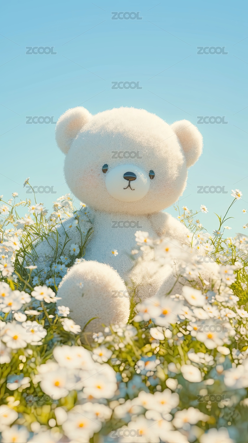 可爱草地的羊毛毡毛绒狗狗3D卡通立体插画