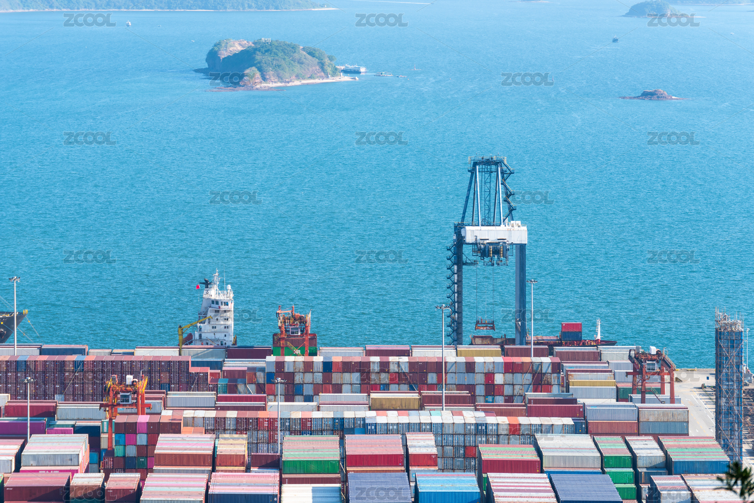 深圳蛇口港口赤湾港和海面上行驶的一艘货轮