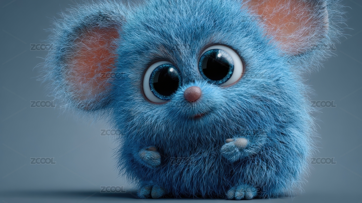 蓝色毛绒小生物的可爱姿态