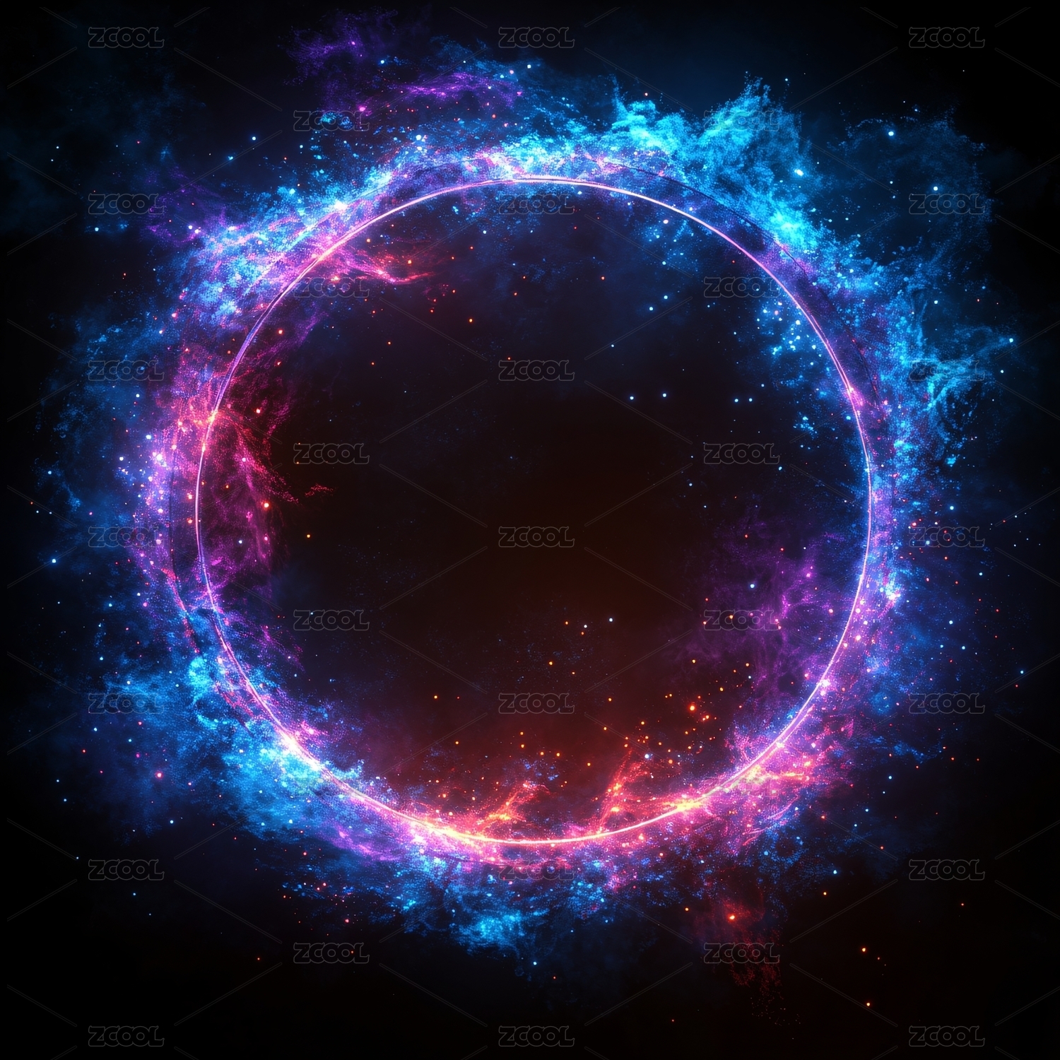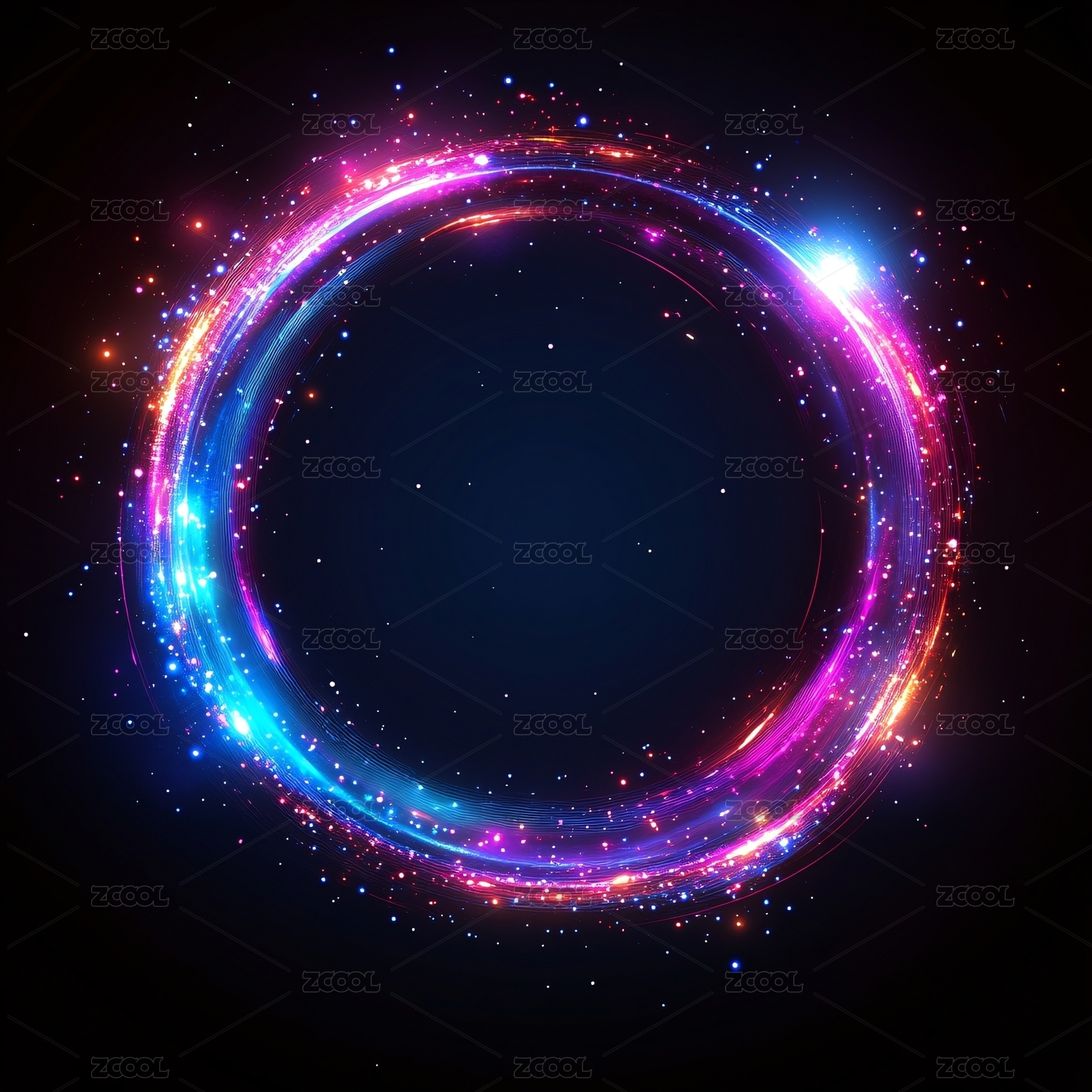 圆环,发光,炫彩,蓝色,红色,紫色,光斑,粒子,背景,黑色