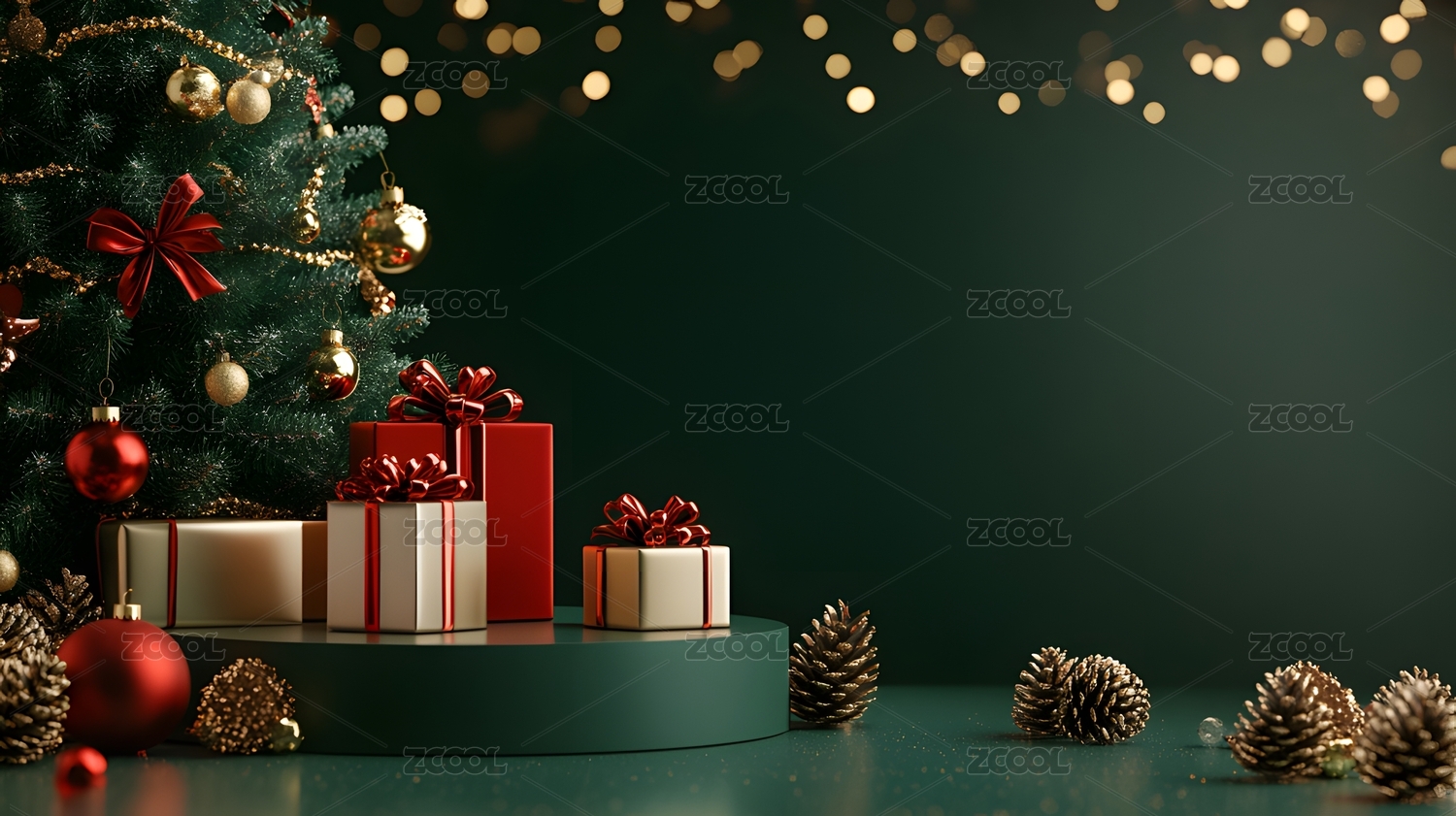 红绿色系圣诞节产品展示台