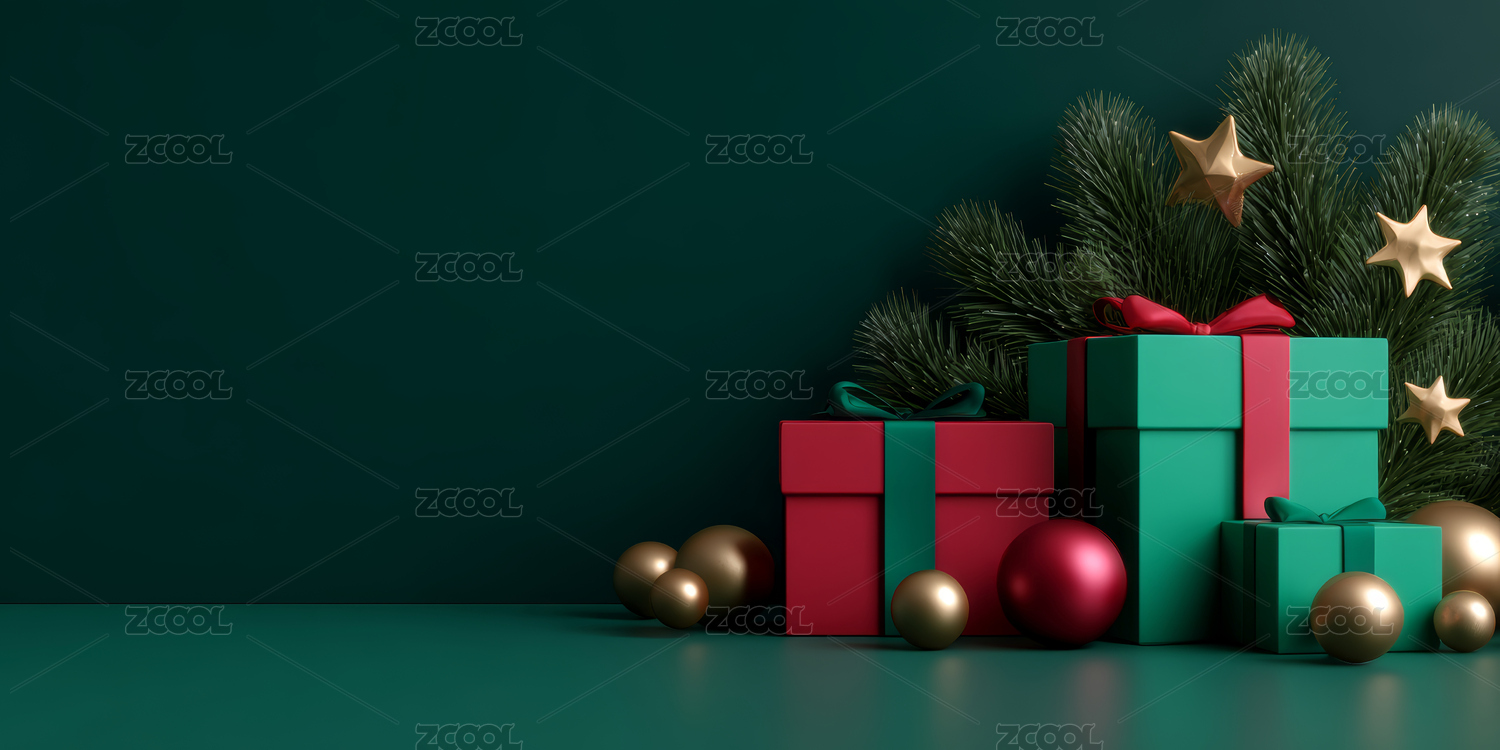 圣诞装饰与礼物盒的节日场景