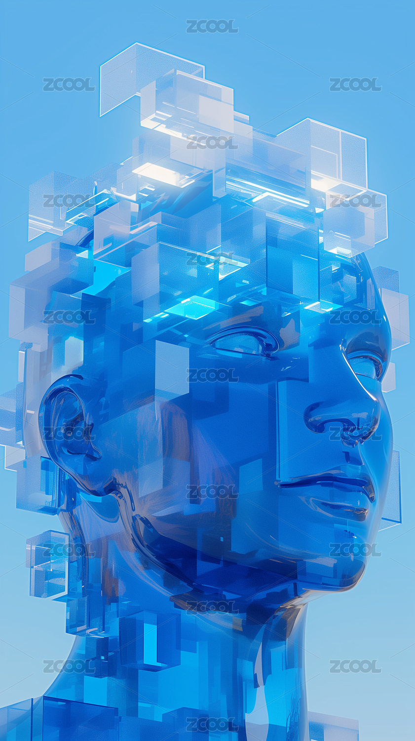 科幻抽象蓝底人物头像信息碎块方块3D插画