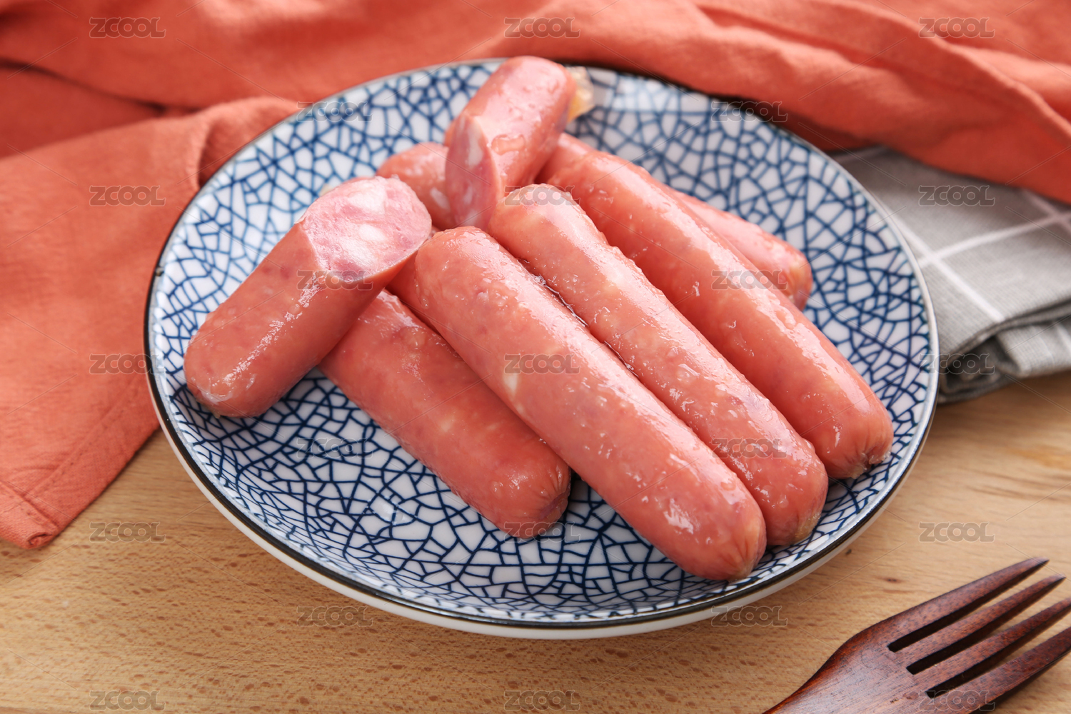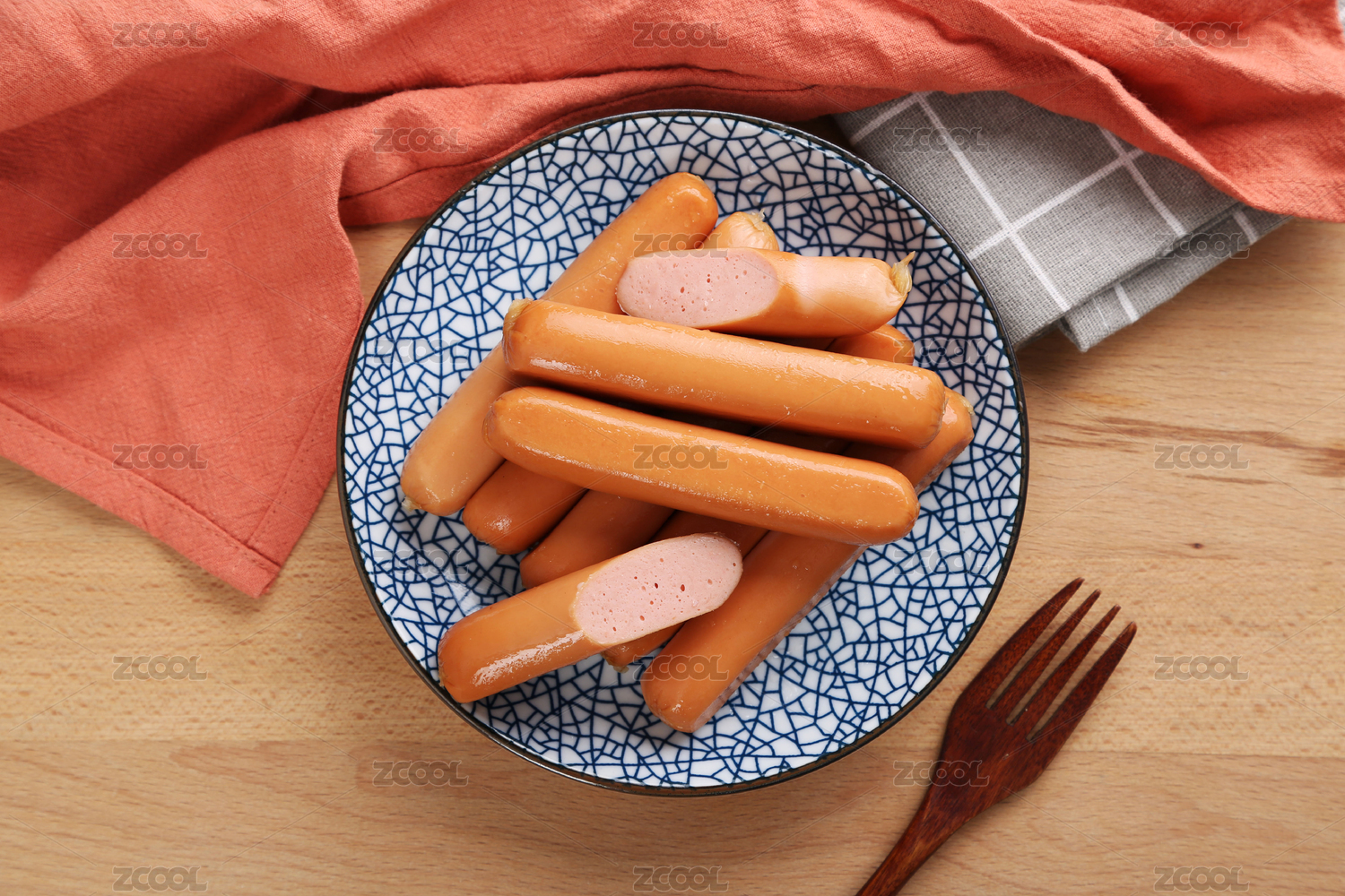 火腿肠,食物,盘子,餐具,餐布,木桌,美食,摆盘,香肠,肉