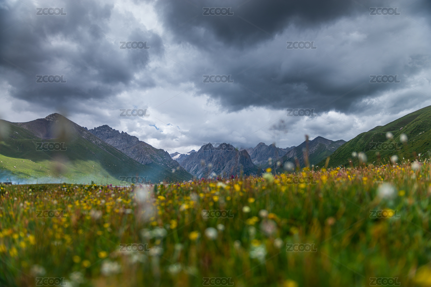 新疆阿勒泰禾木村景区夏天高山草原野花