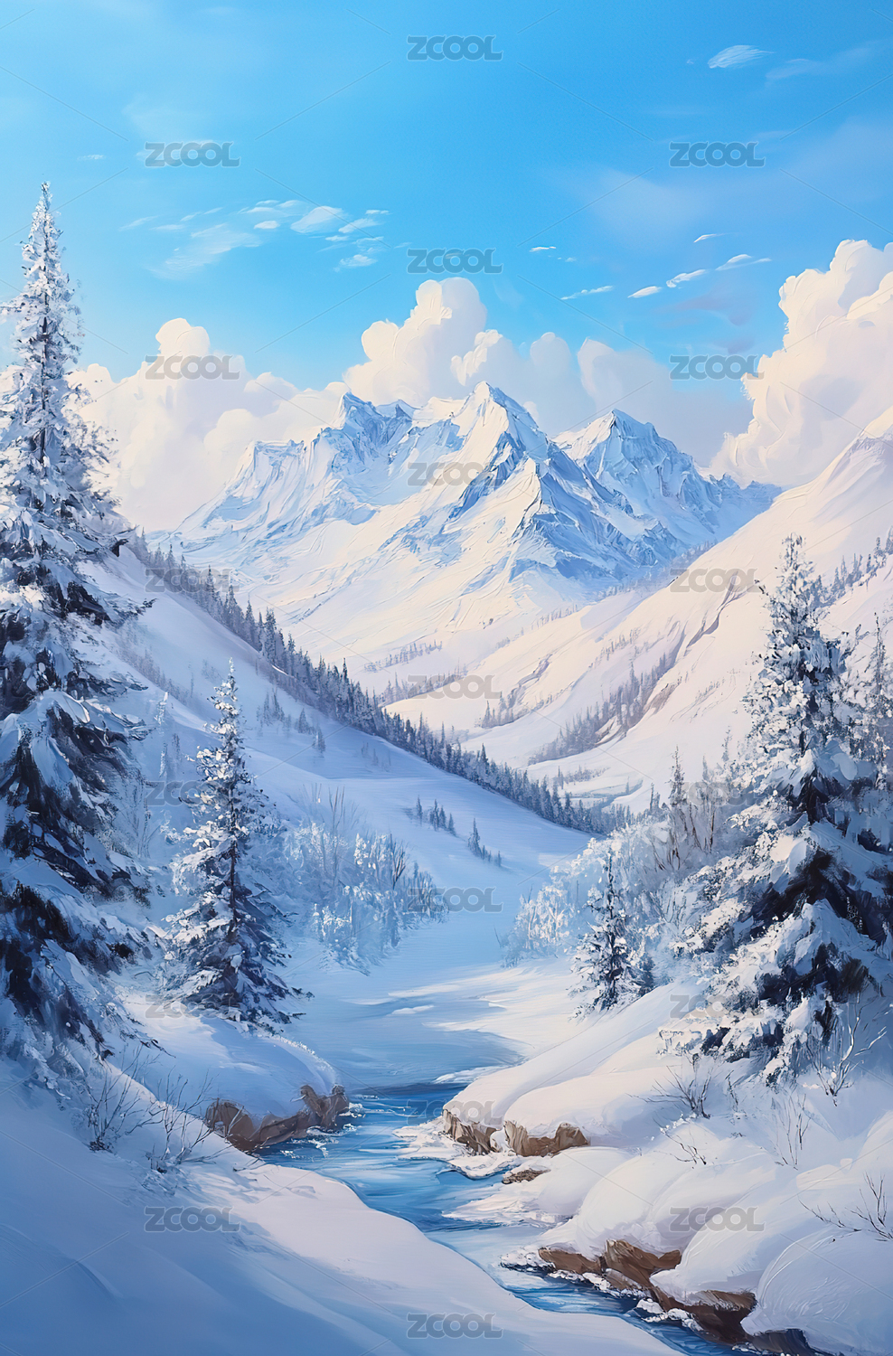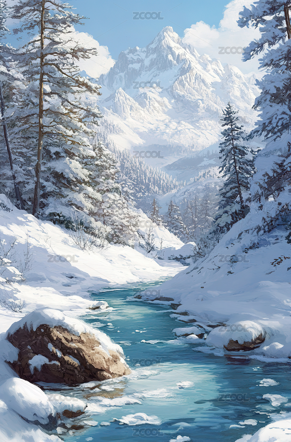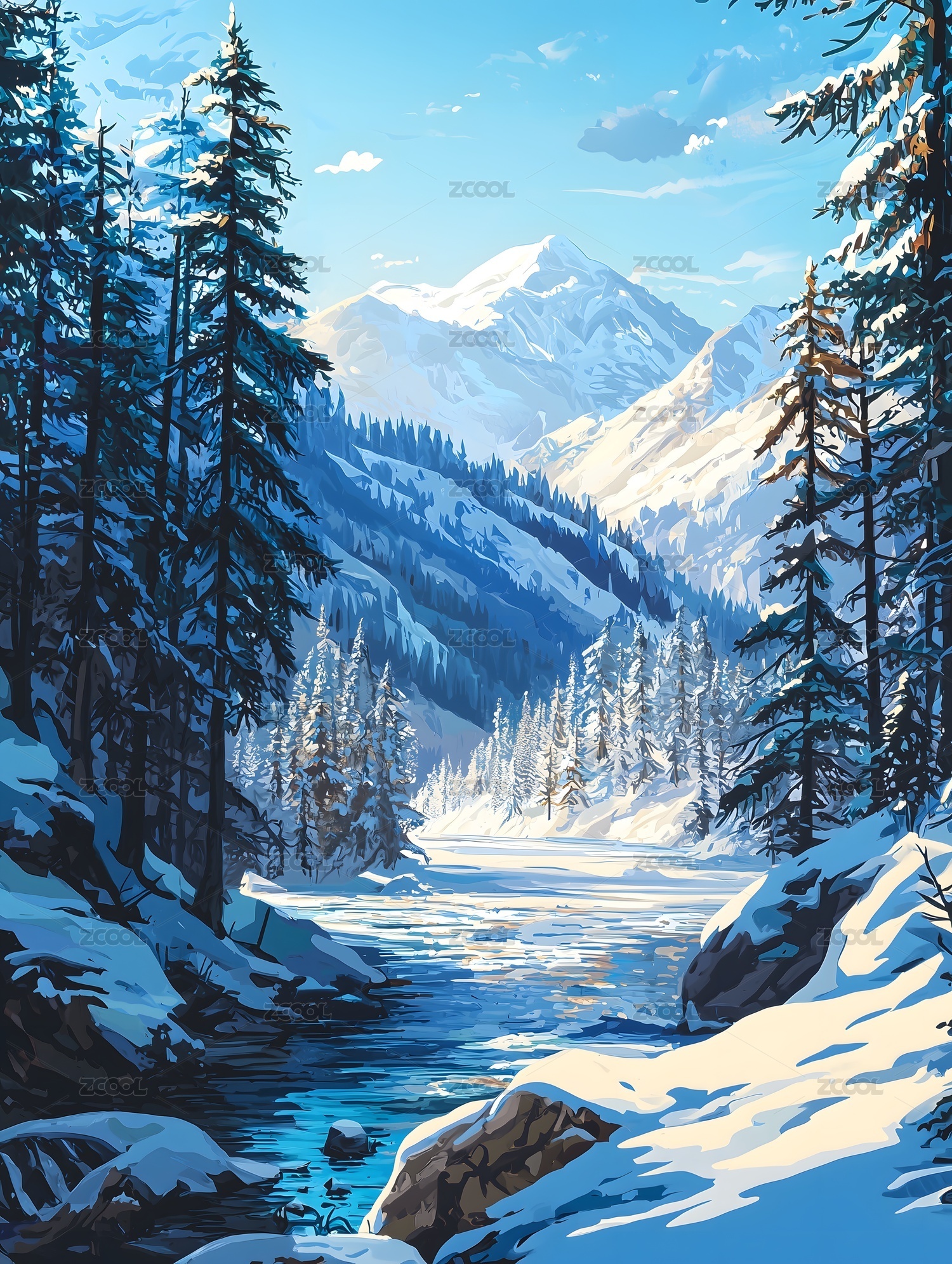 景色,蓝天,自然,风景,宁静,河流,树木,雪山,白雪,冬季