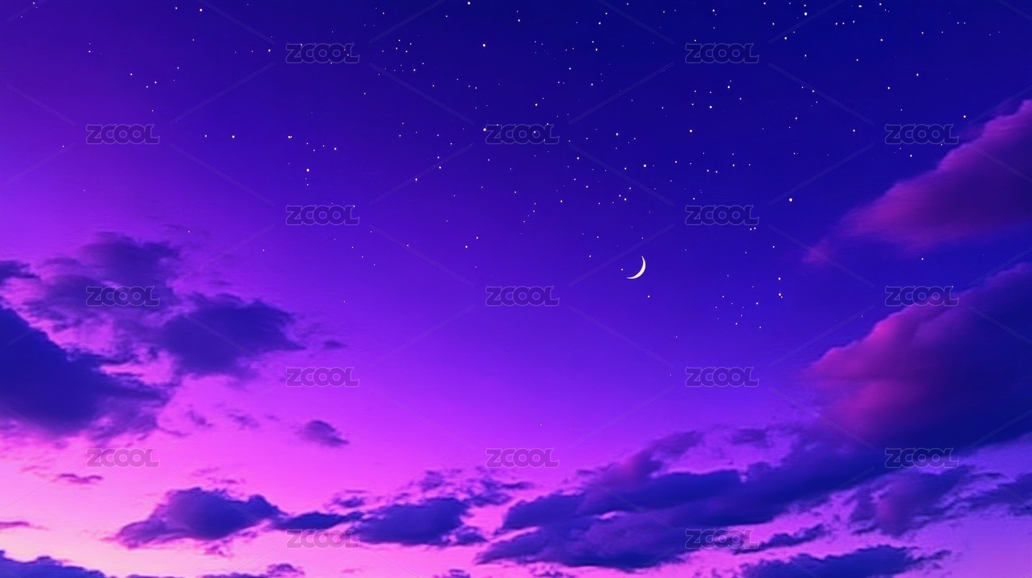夜空,紫色,月亮,新月,云朵,天空,自然,浪漫,梦幻,氛围