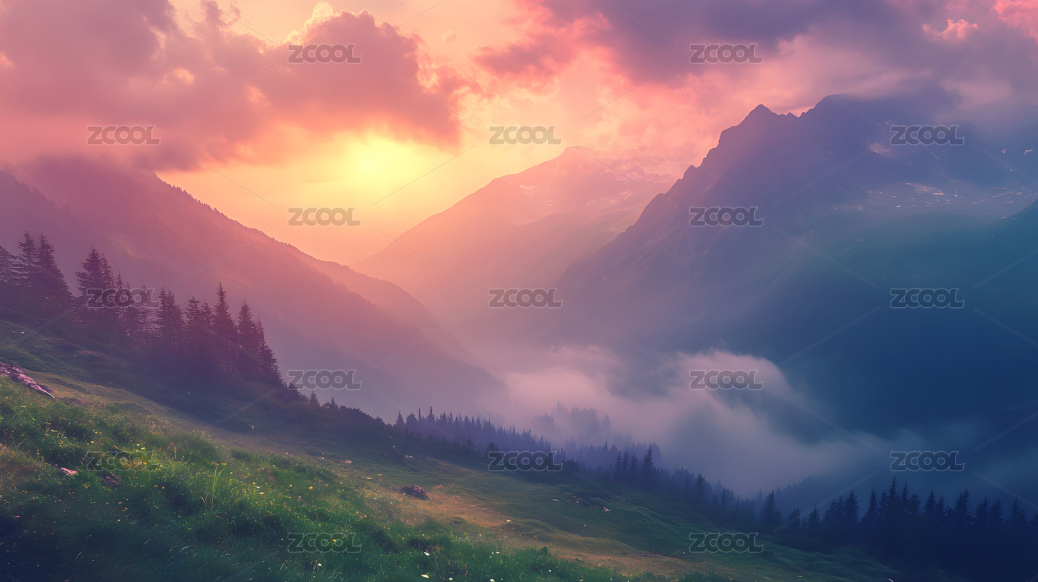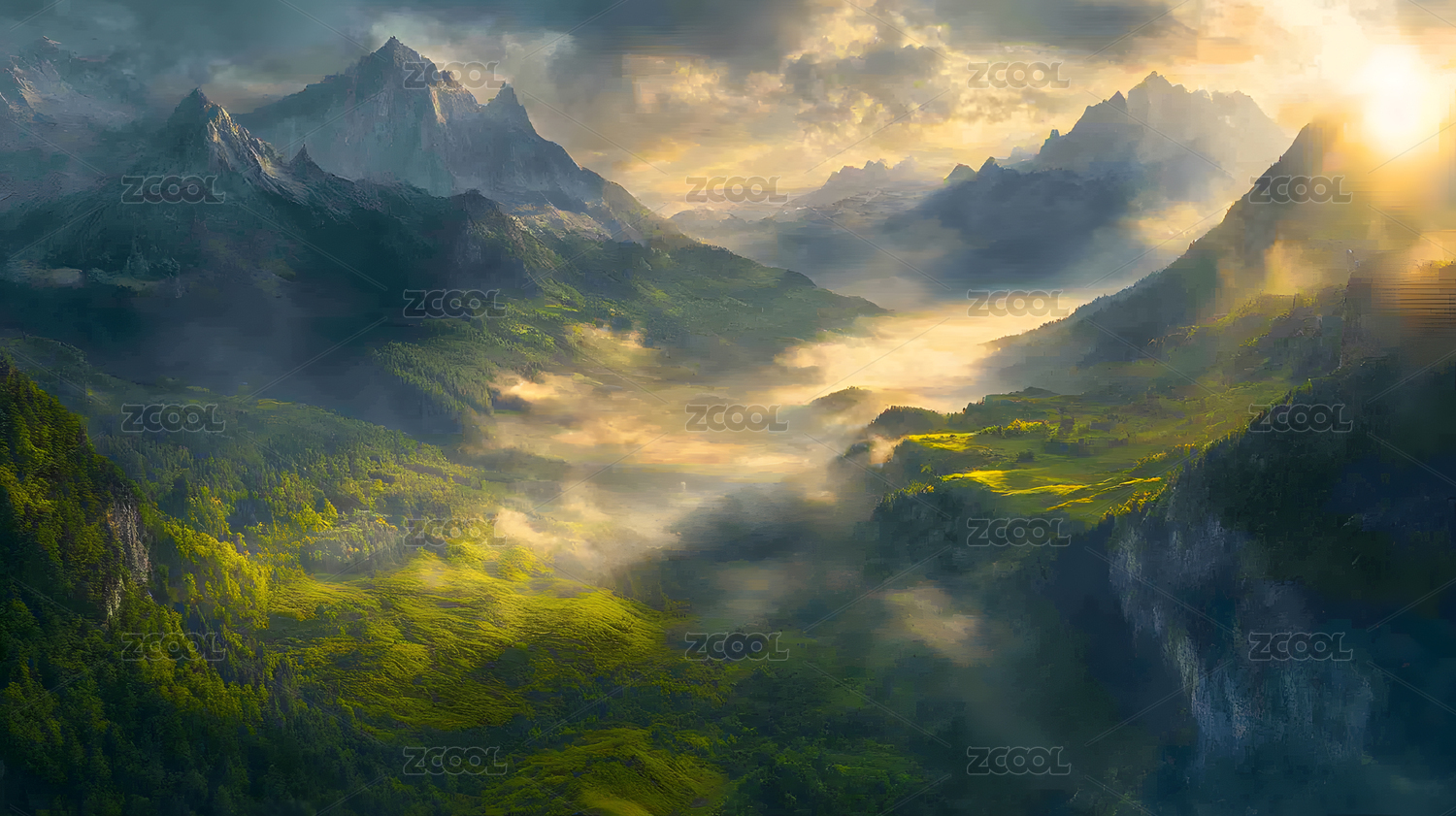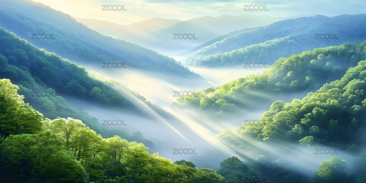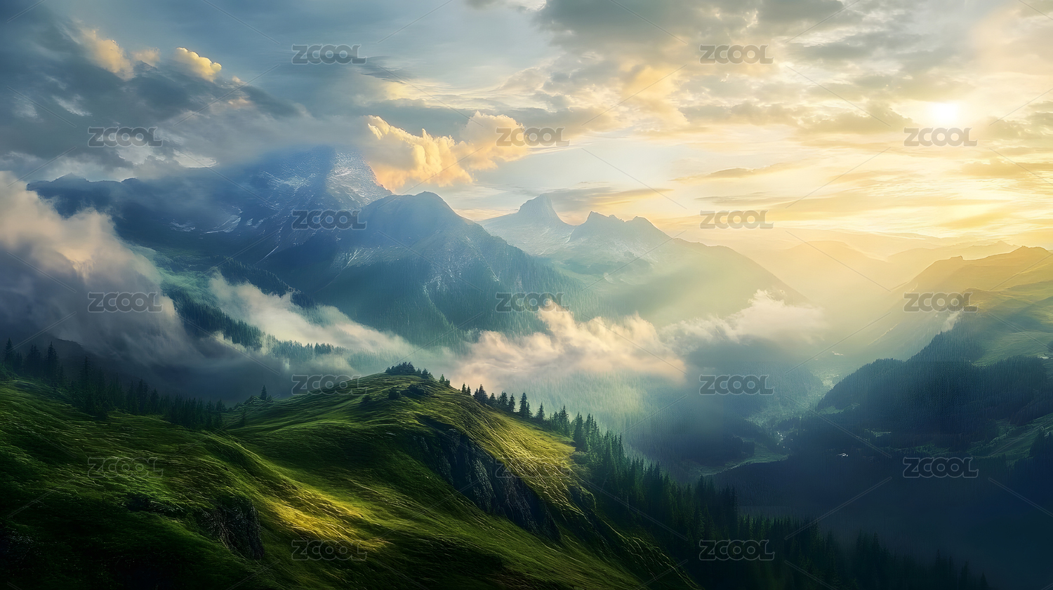 自然, 绿色, 光线,山峰, 云雾, 森林, 景色, 天空, 宁静, 祥和