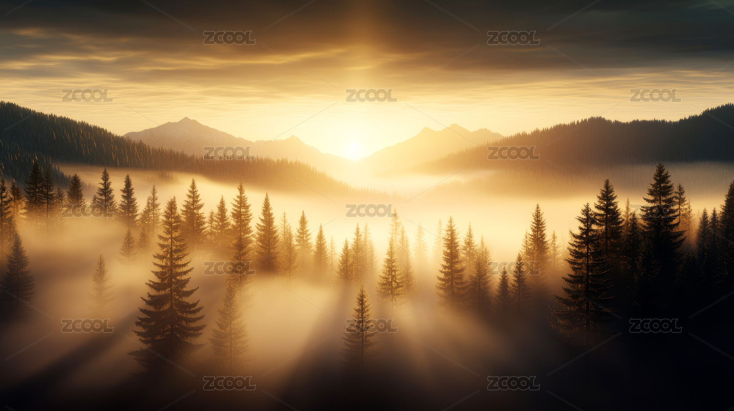浓雾笼罩着绿色茂密的森林令人惊叹的早晨背