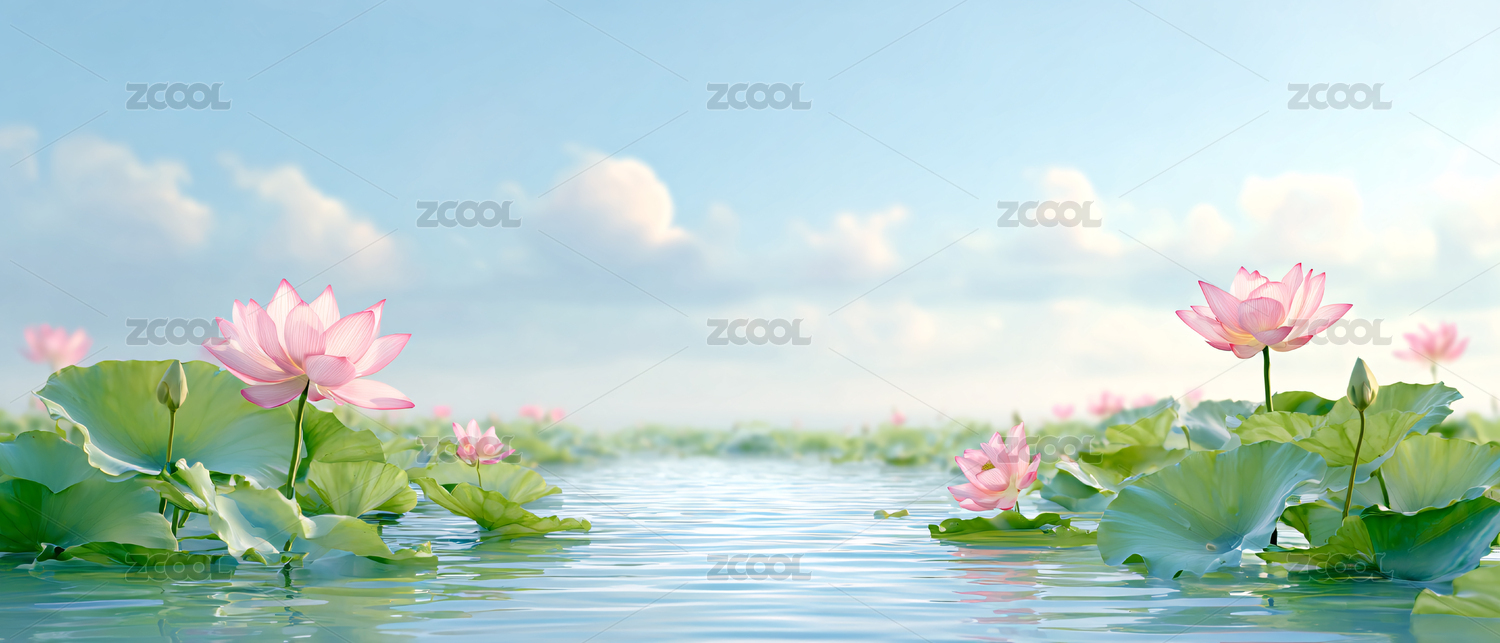 夏日荷花荷叶卡通小清新国风小暑节气插画