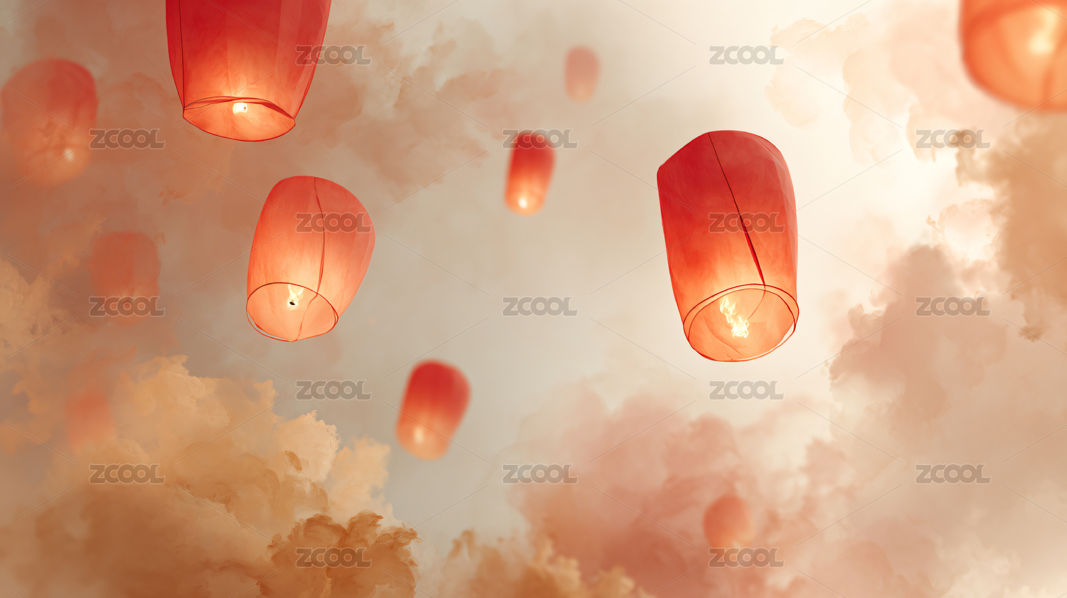中秋节孔明灯元宵节灯笼思念团圆概念插画