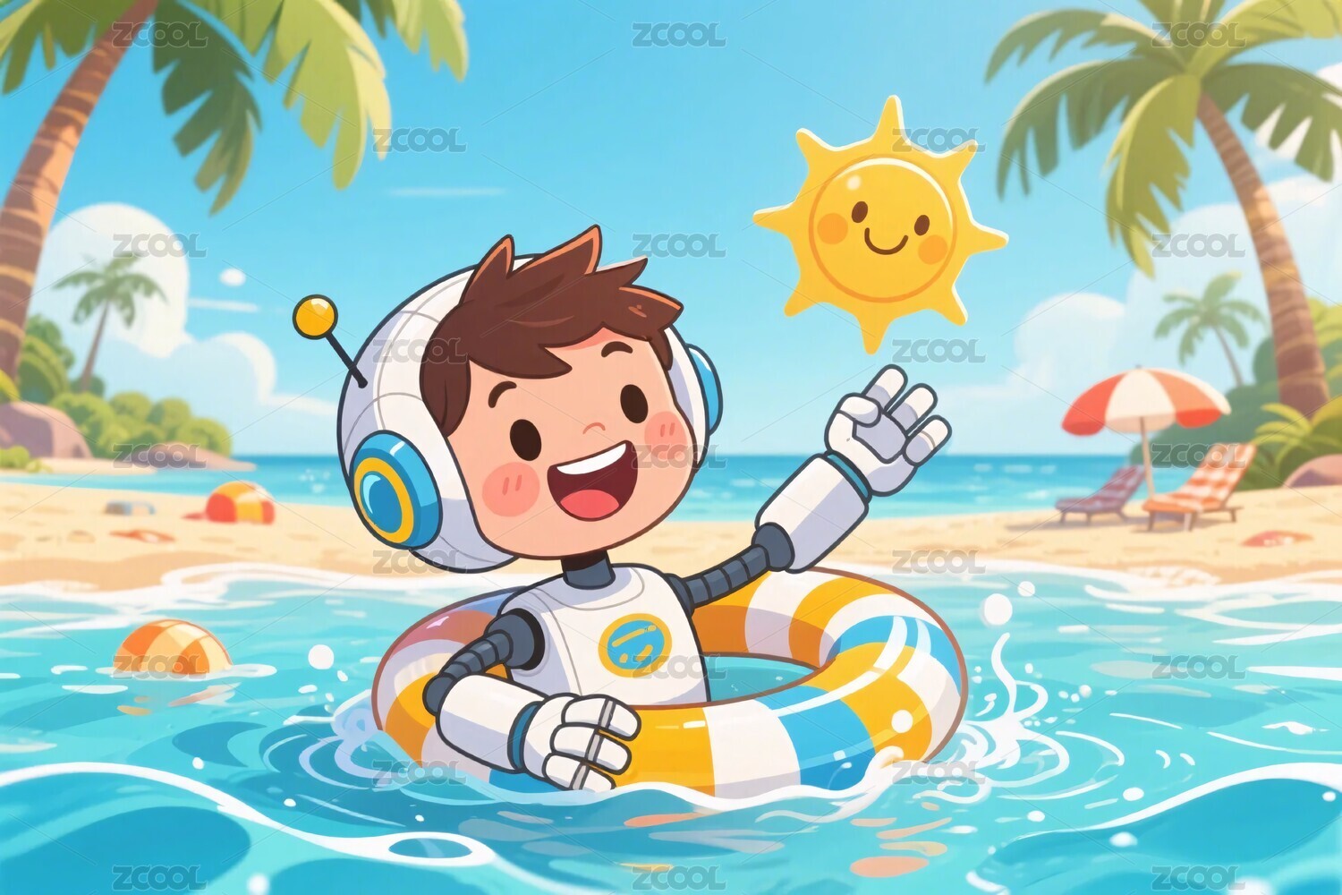儿童,沙滩,玩耍,开心,阳光,夏日,海浪,帽子,卡通,稚气