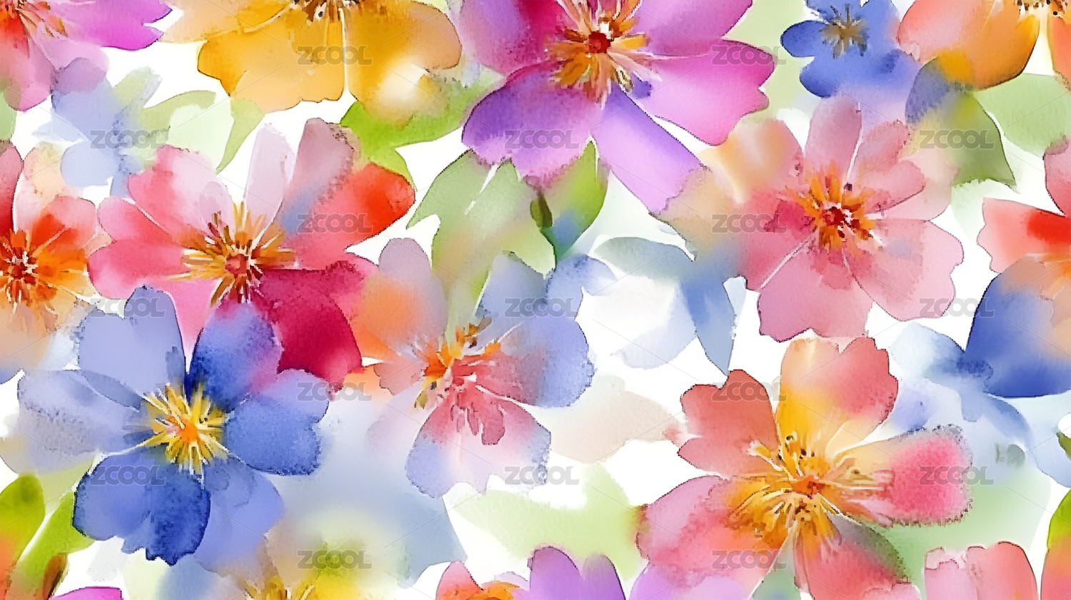 水彩,花卉,花朵,大花,碎花,紫色,粉色,绿色,叶子,印花