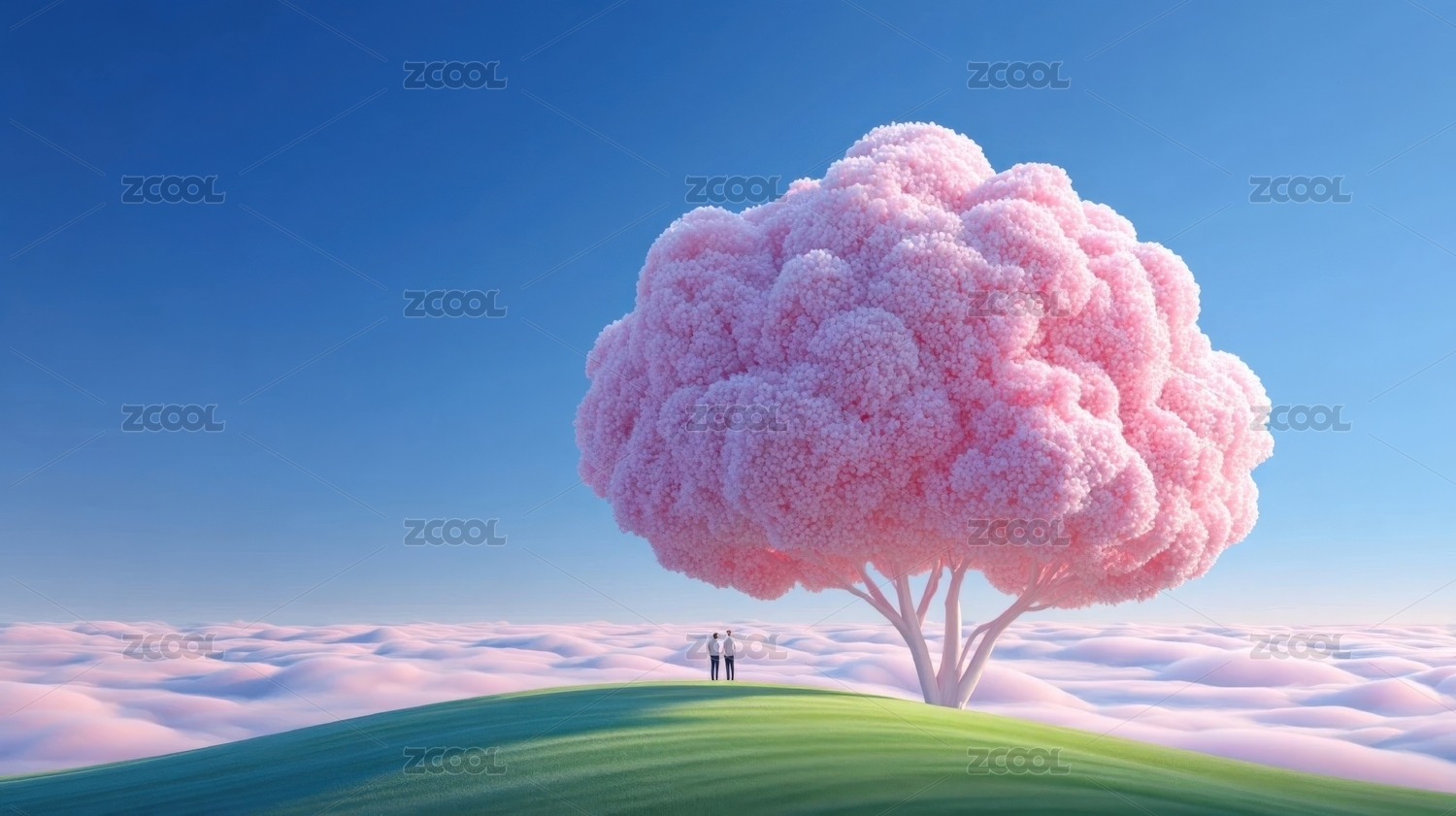 梦幻,艺术,粉色,唯美,浪漫,色彩,棉花糖,树,云,云海