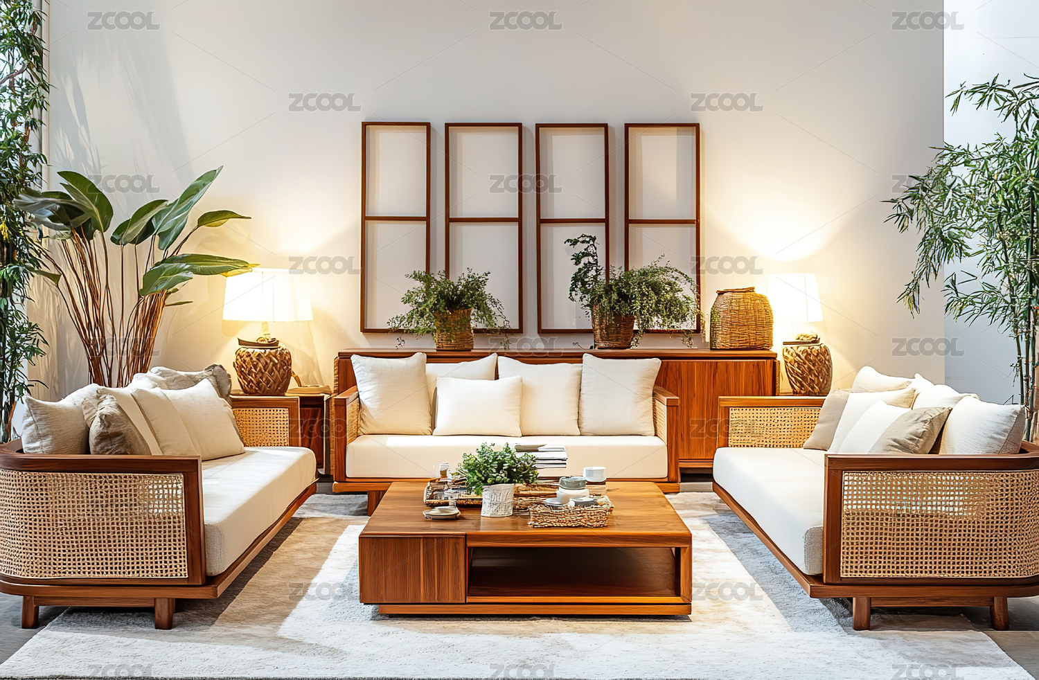室内设计, 茶几, 休闲, 自然, 沙发, 植物, 舒适, 绿色植物, 奢华,藤制家具