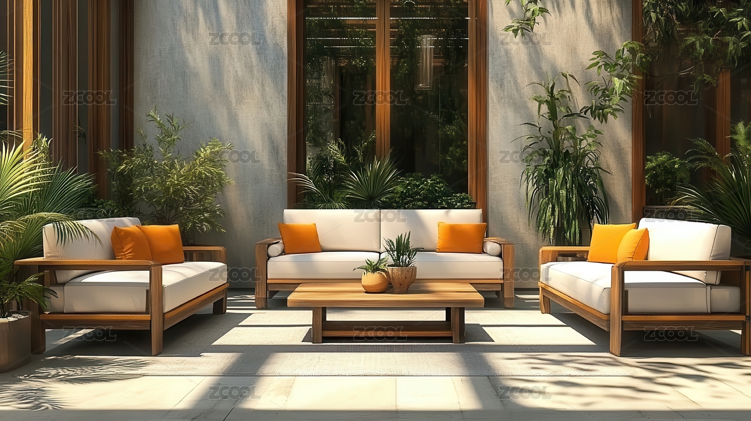 绿植环绕的户外休闲空间