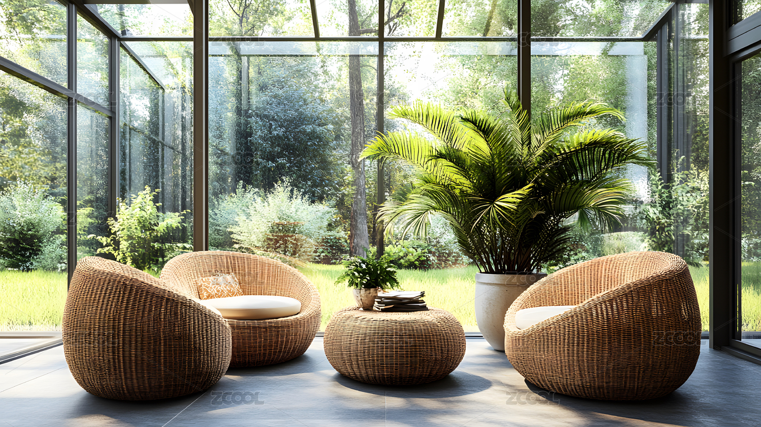 室内绿植环绕的休闲空间