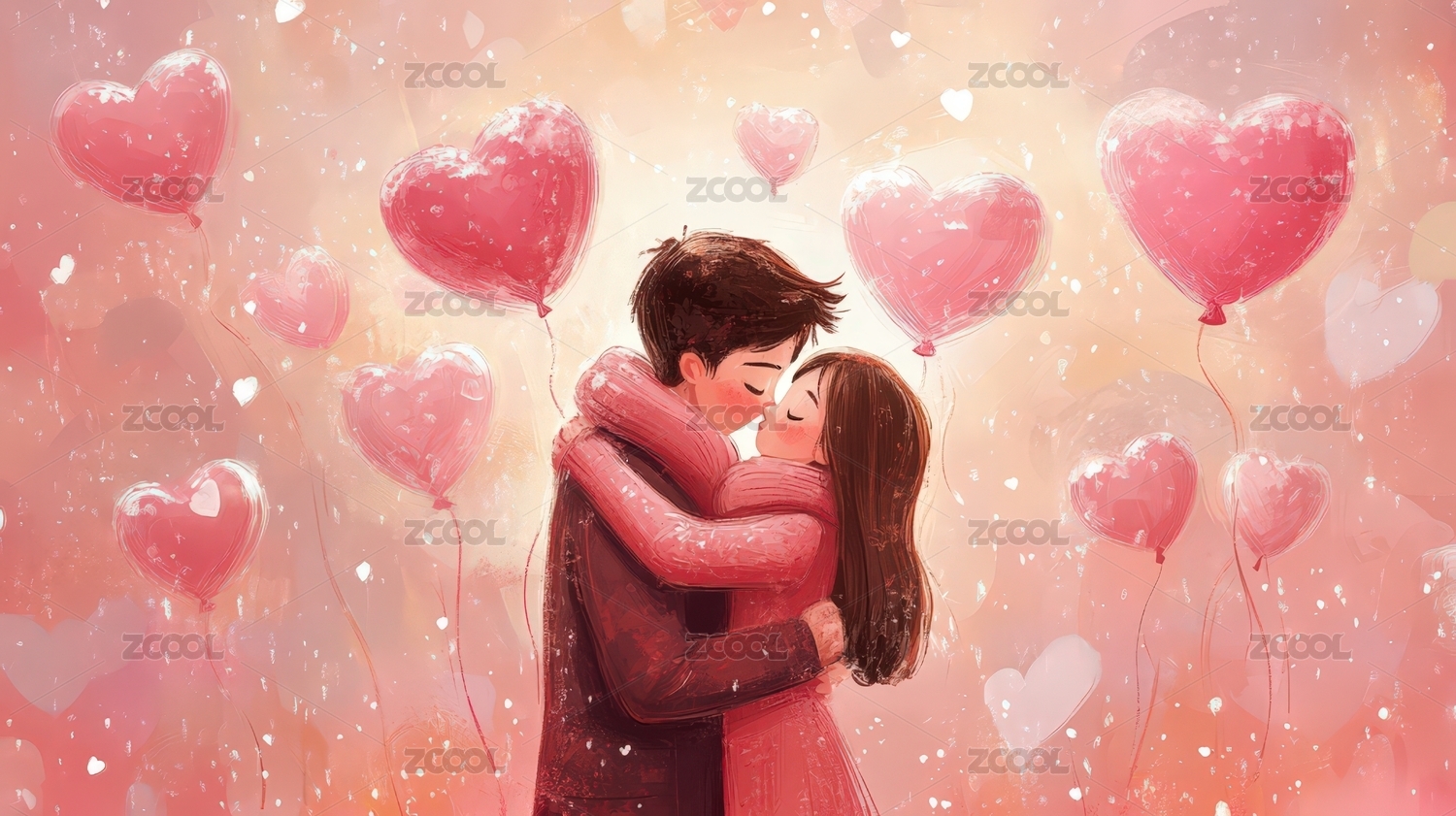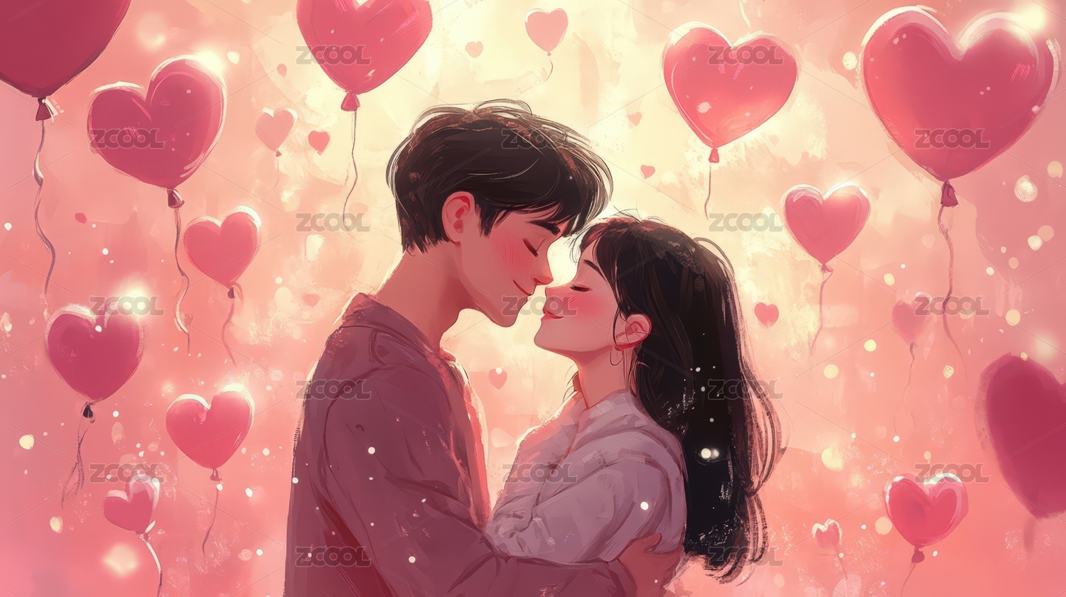 人,绘画插图,宁静,侧面视角,留白,天空,蓝色,半身像,气球,心型