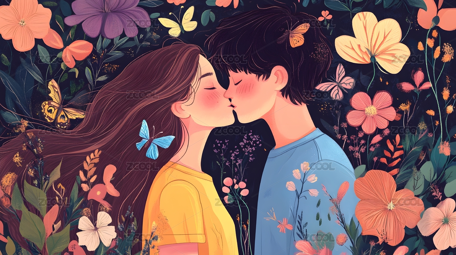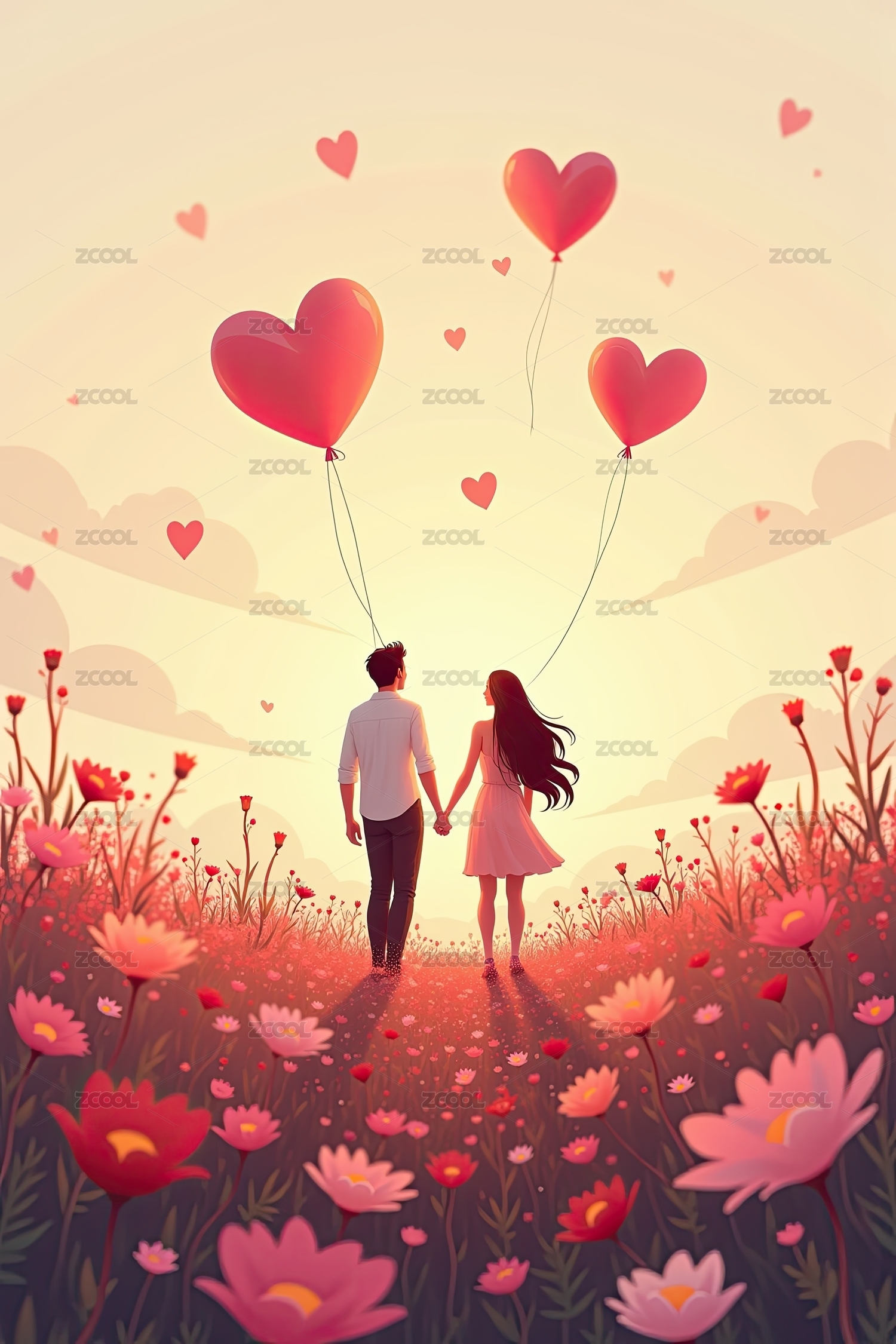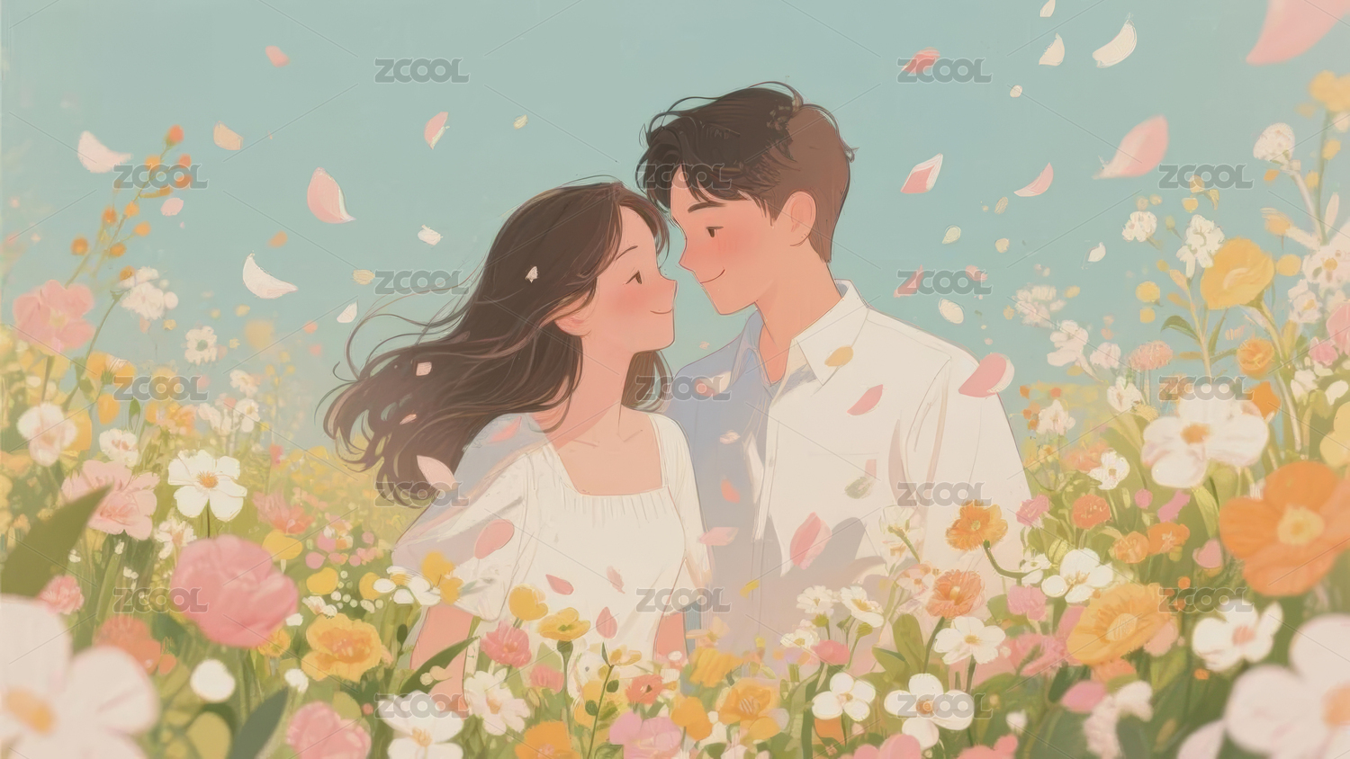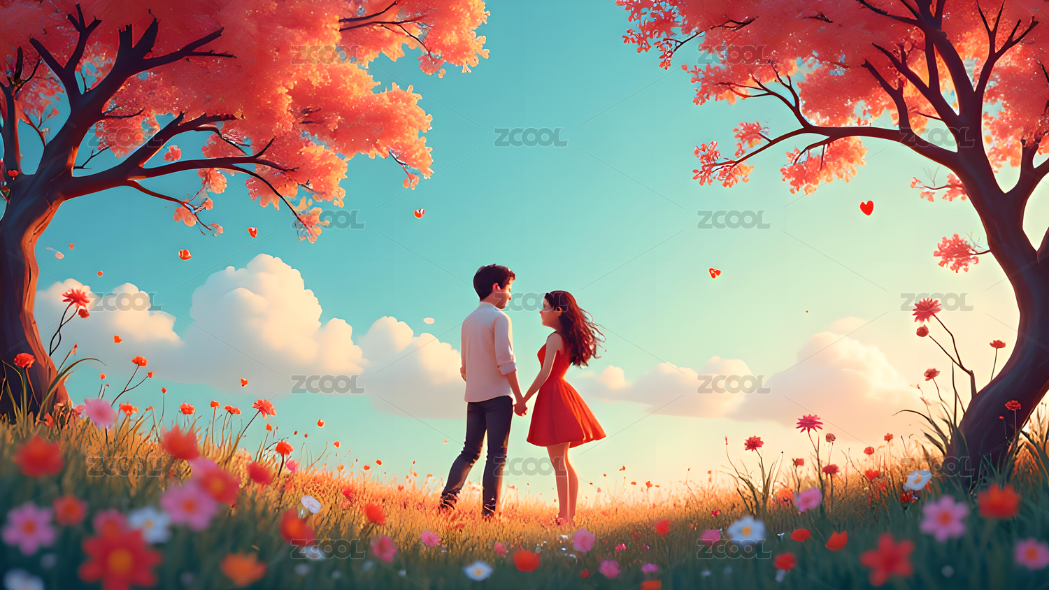 星空下的浪漫相拥花海中的甜蜜爱恋情人节