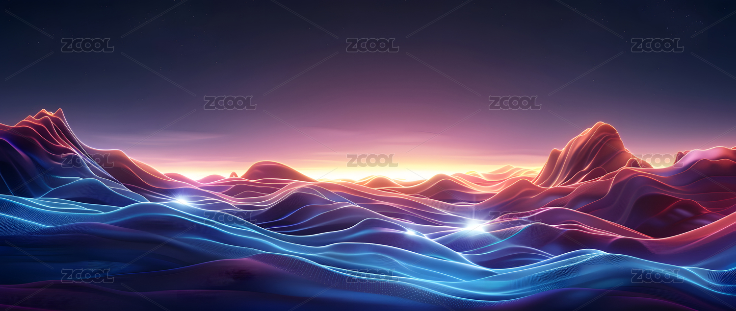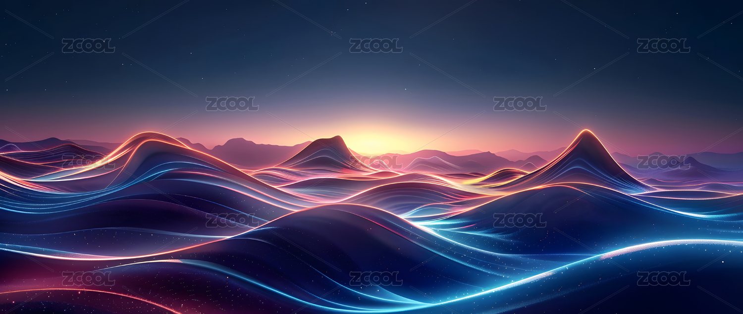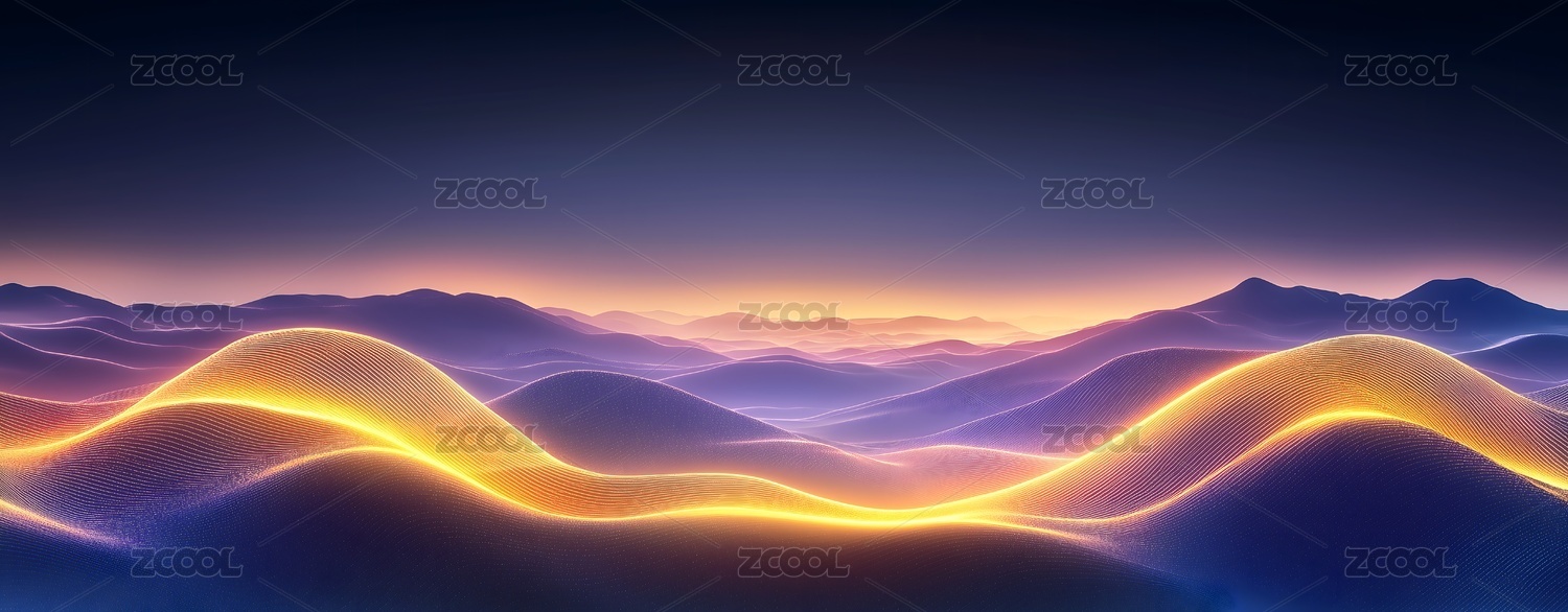 3D,蓝色,科技,山峰,金色,线条,发光,山脉,未来