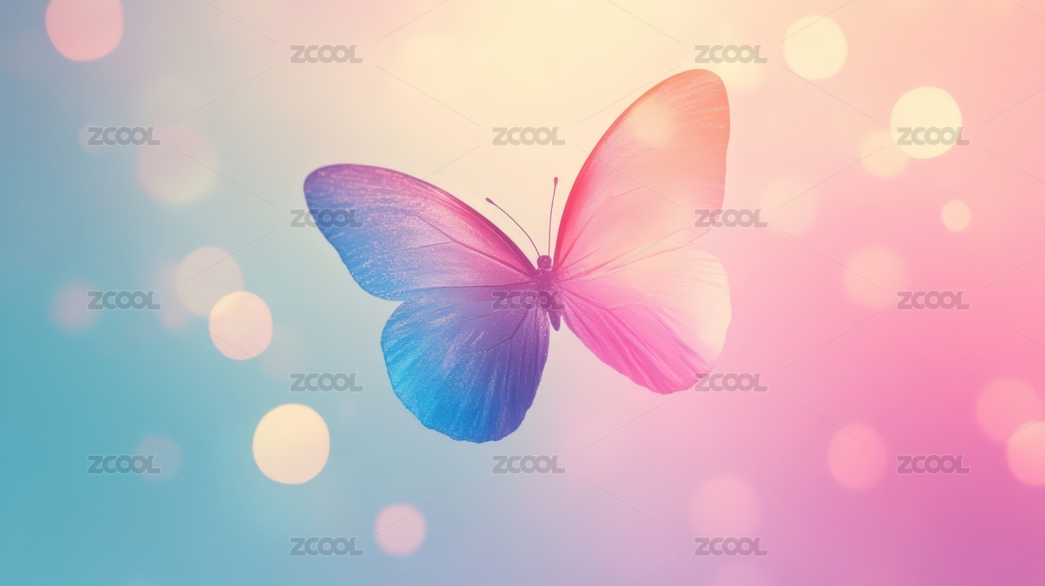 梦幻蓝粉渐变蝴蝶空中飞舞