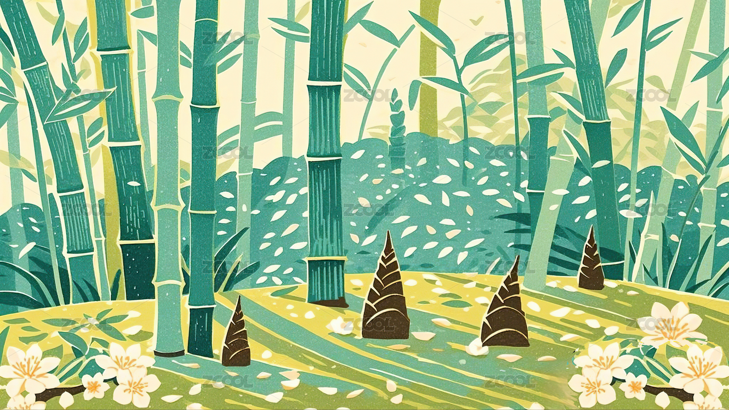 春笋,春天,竹子,竹,竹林,笋,竹笋,插画