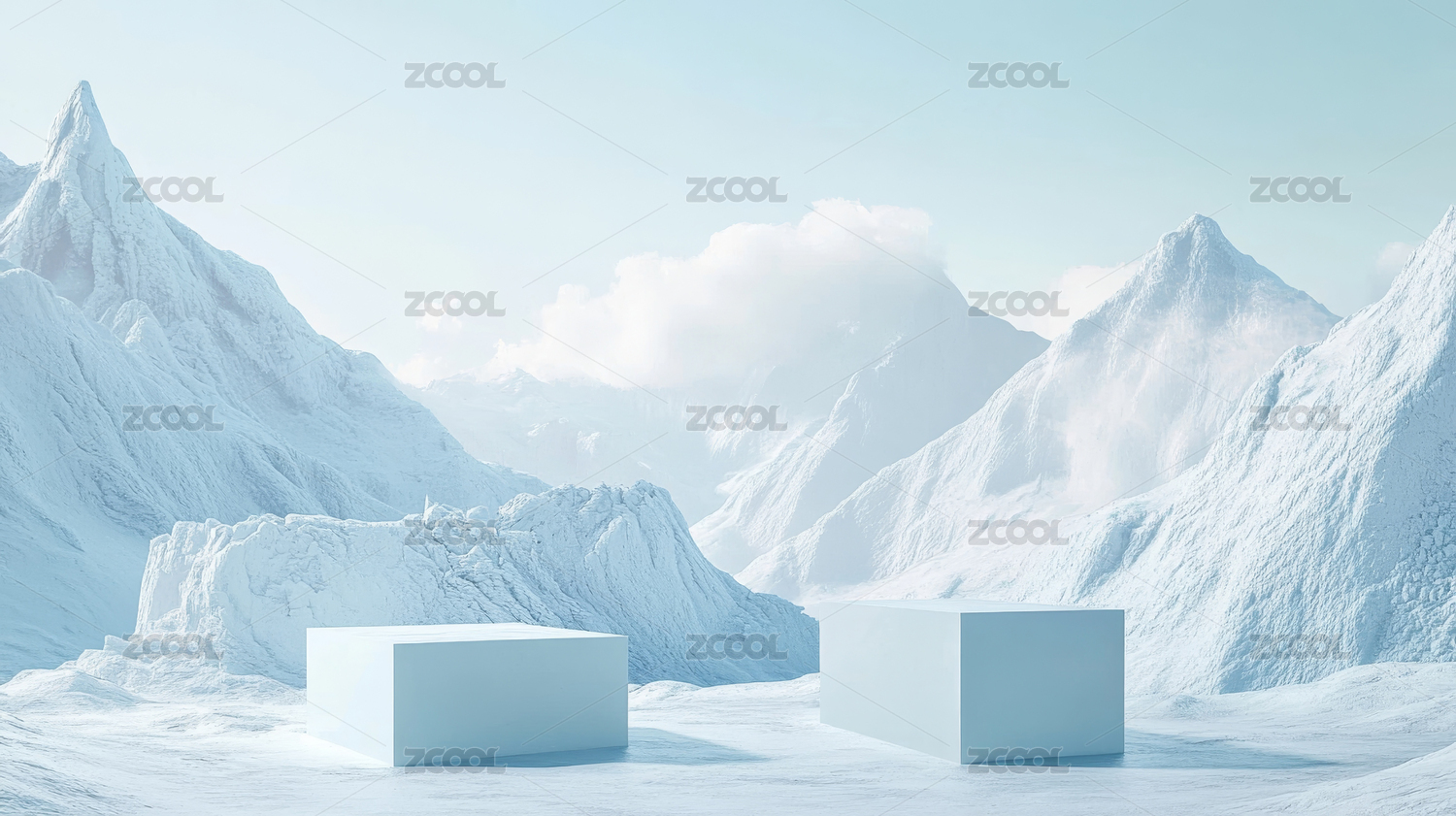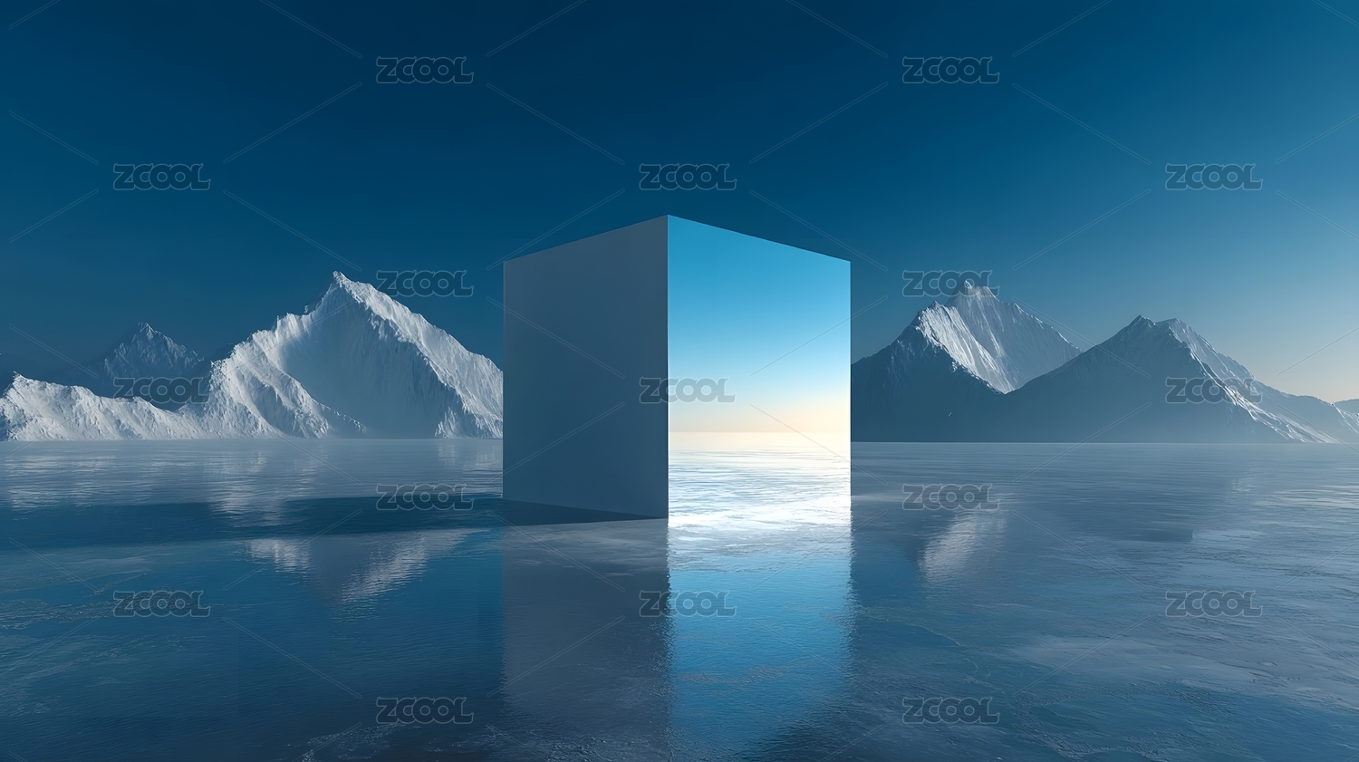 梦幻,蓝色,唯美,倒影,水面,自然,光线,冰雪,雪山,平静