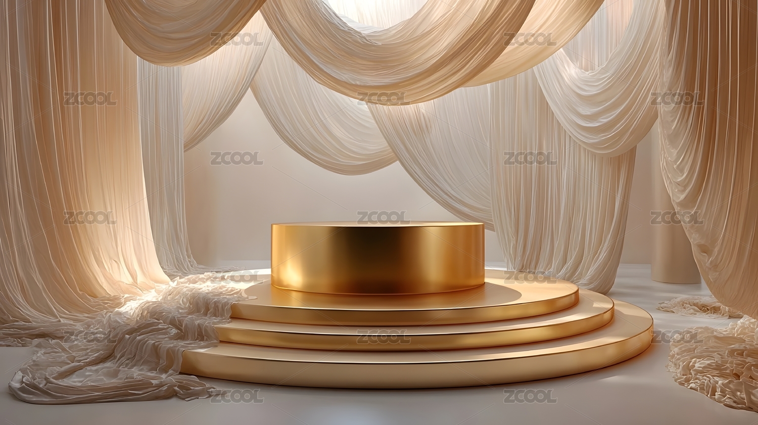 金色帷幕与圆形展示台