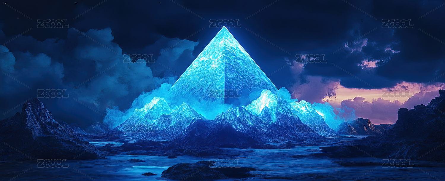 天空,光芒,蓝色,未来,抽象,云层,科幻,神秘,发光,几何