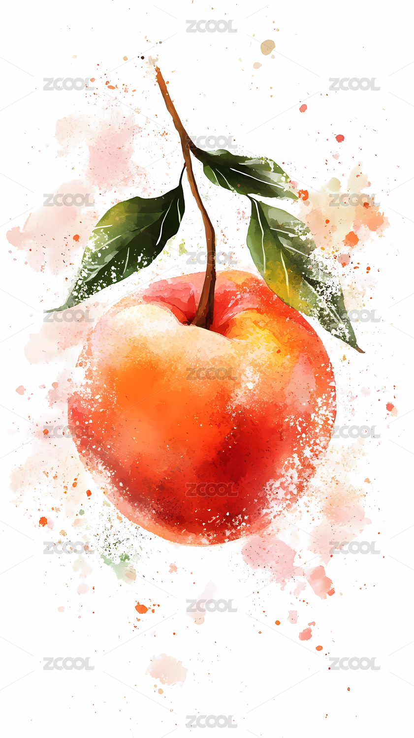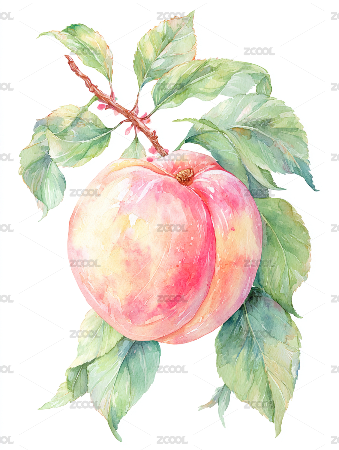 插画,水果,农业,健康,果实,食品,特写,手绘,水蜜桃