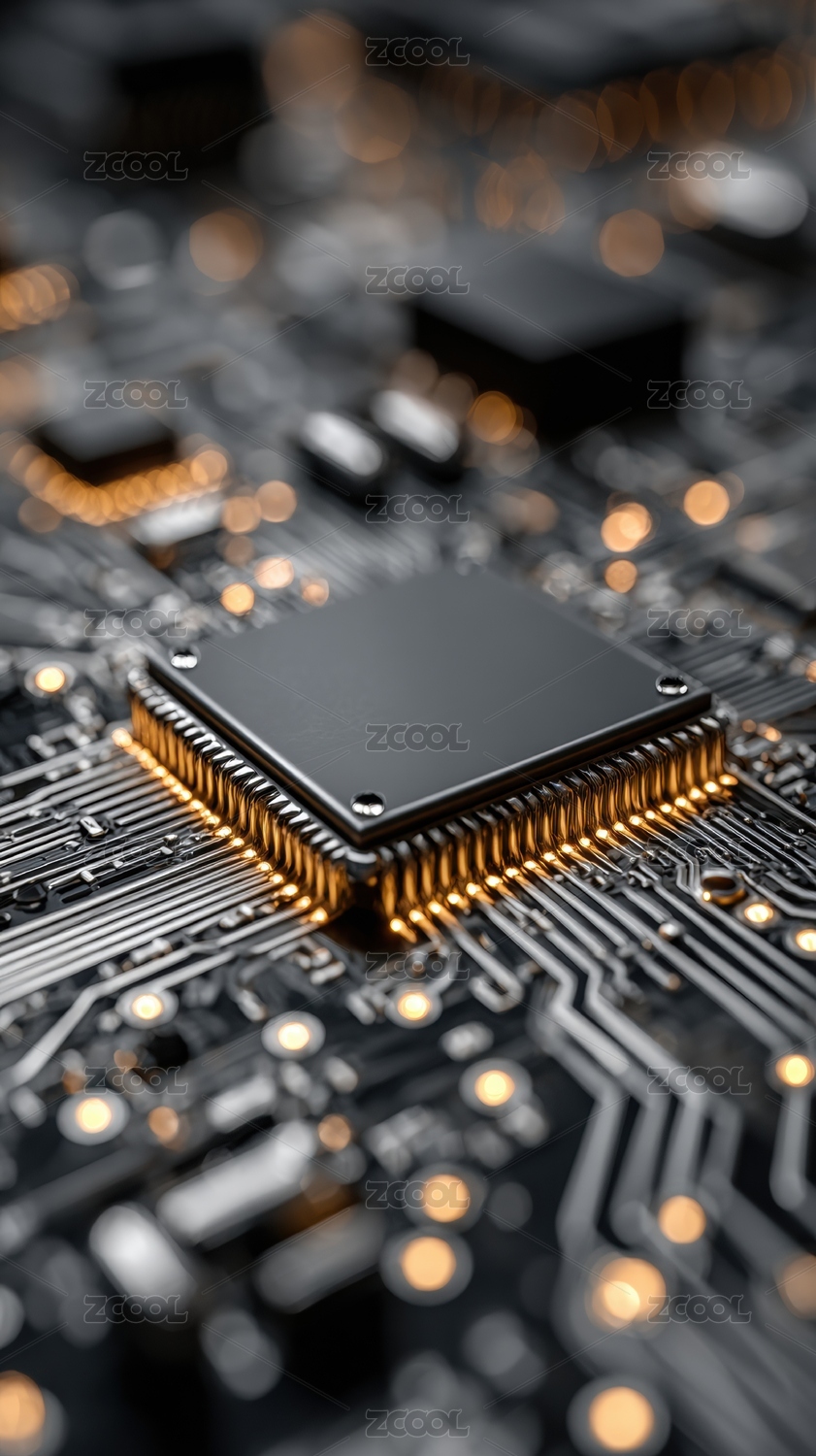 电路板特写芯片闪耀光芒