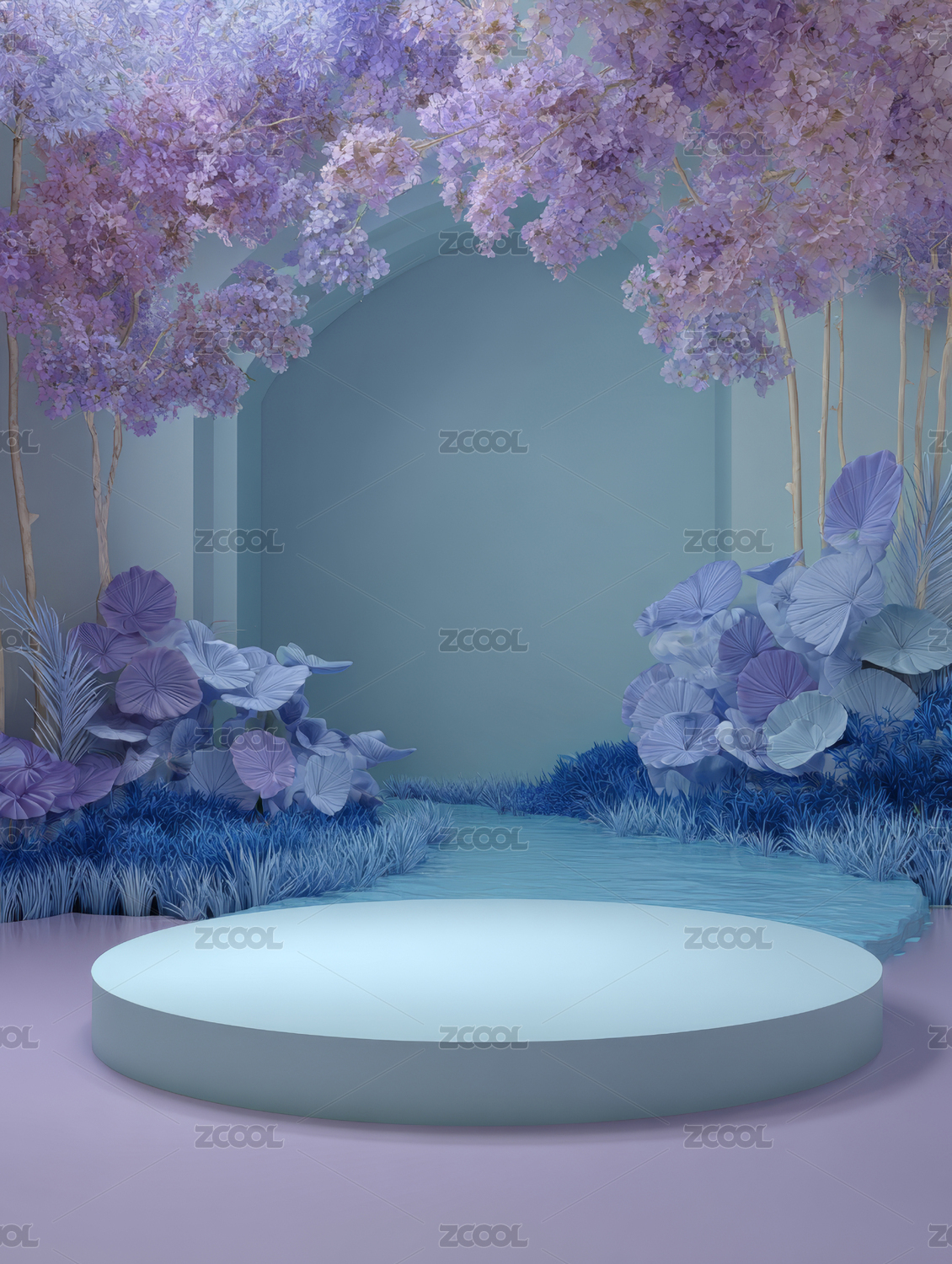 舞台,展示,背景,灯光,花卉,紫色,圆形,平台,装饰,现代