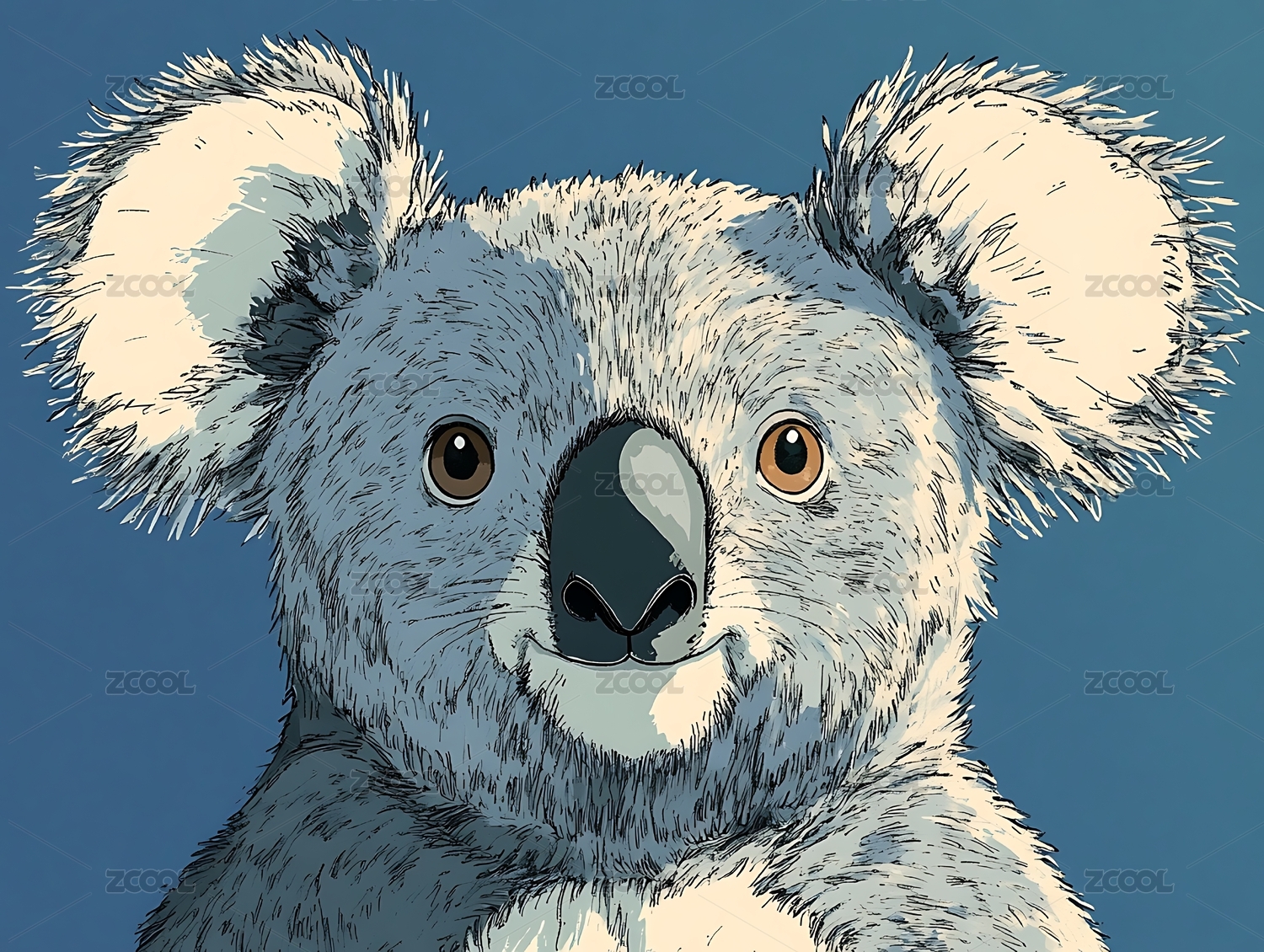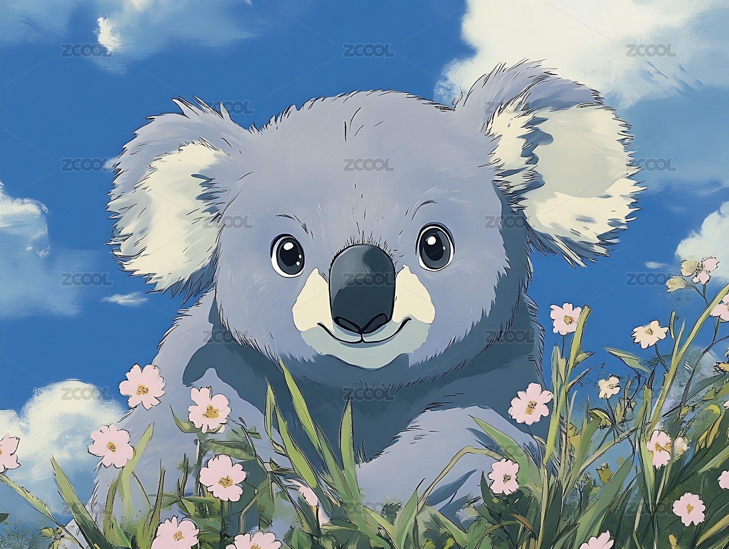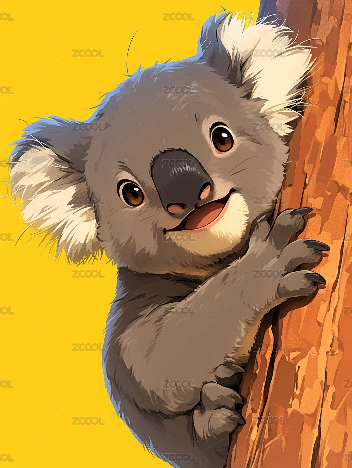 考拉,树枝,可爱,卡通,动物,灰色,耳朵,眼睛,微笑