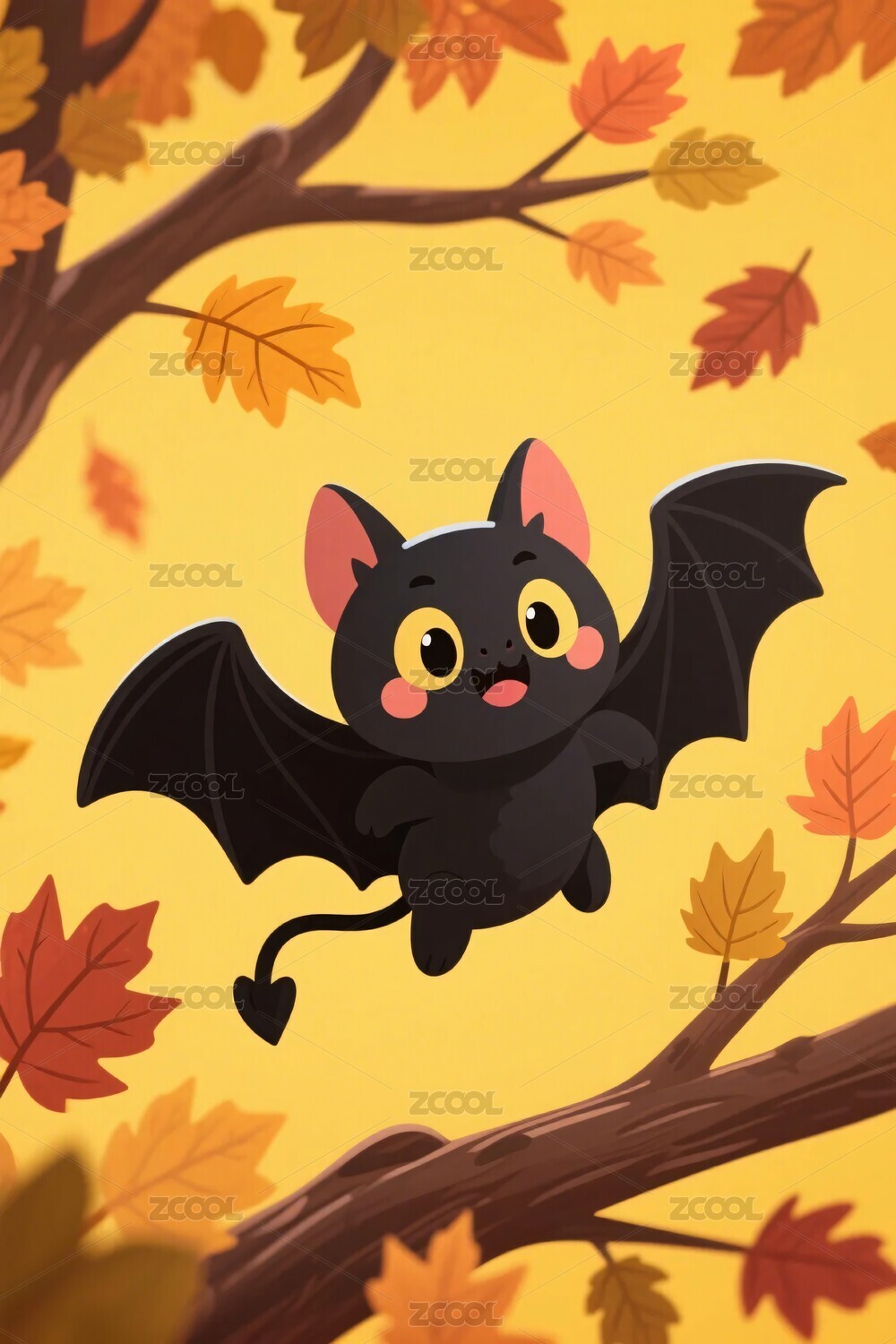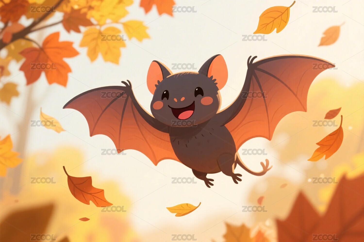 蝙蝠,可爱,秋天,落叶,飞行,动物,卡通,快乐