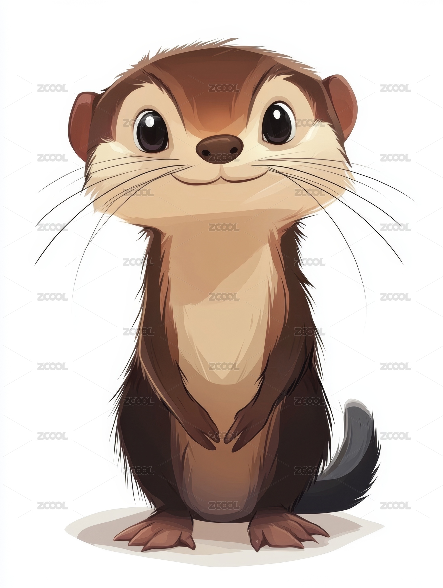 卡通,水獭,可爱,动物,棕色,白色,大眼睛,微笑