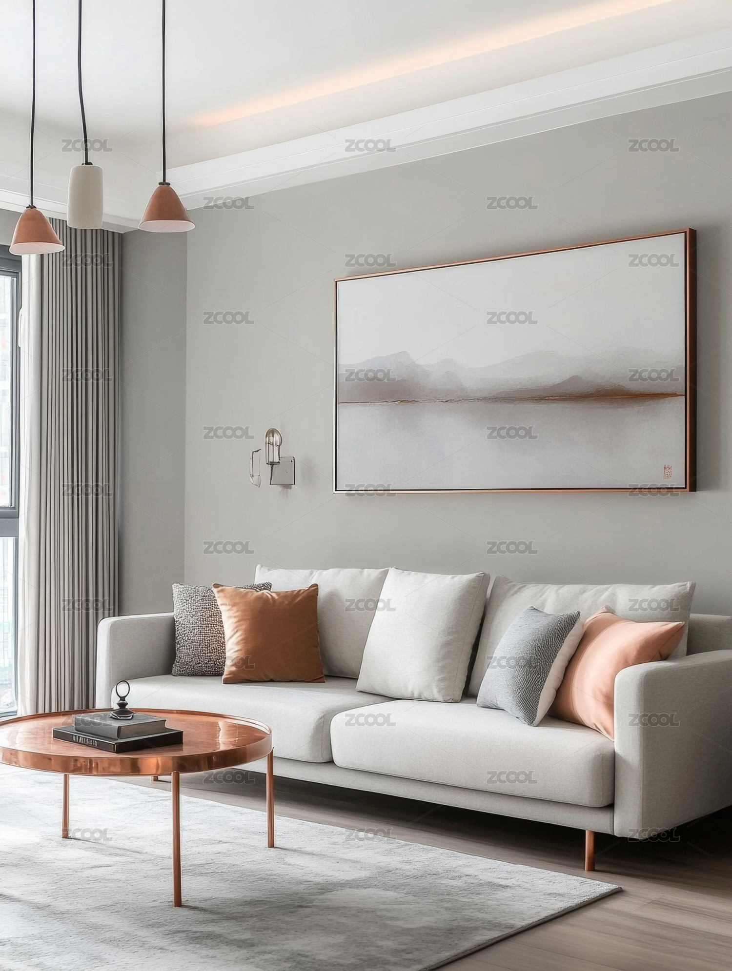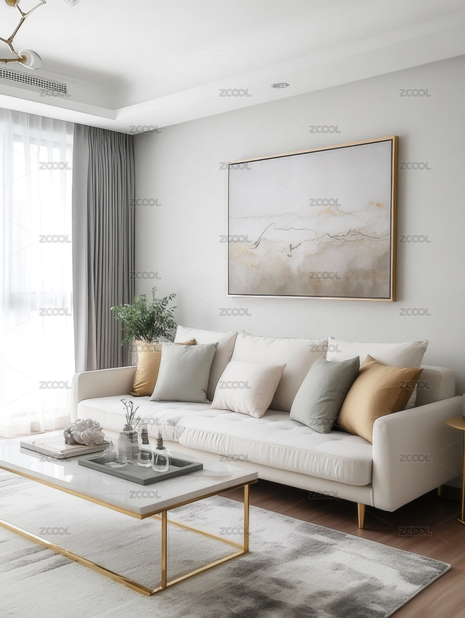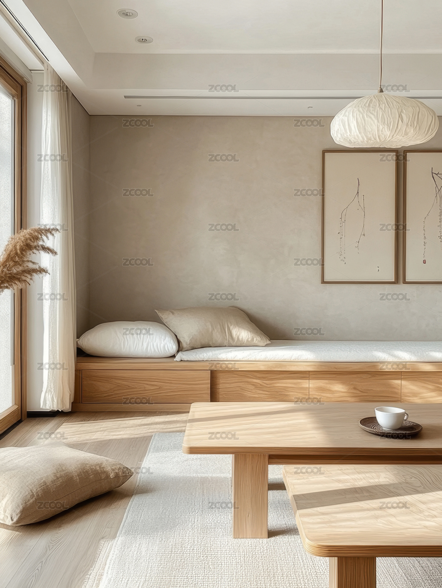 客厅,简约,现代,木质,茶几,装饰品,窗帘,自然光,艺术品