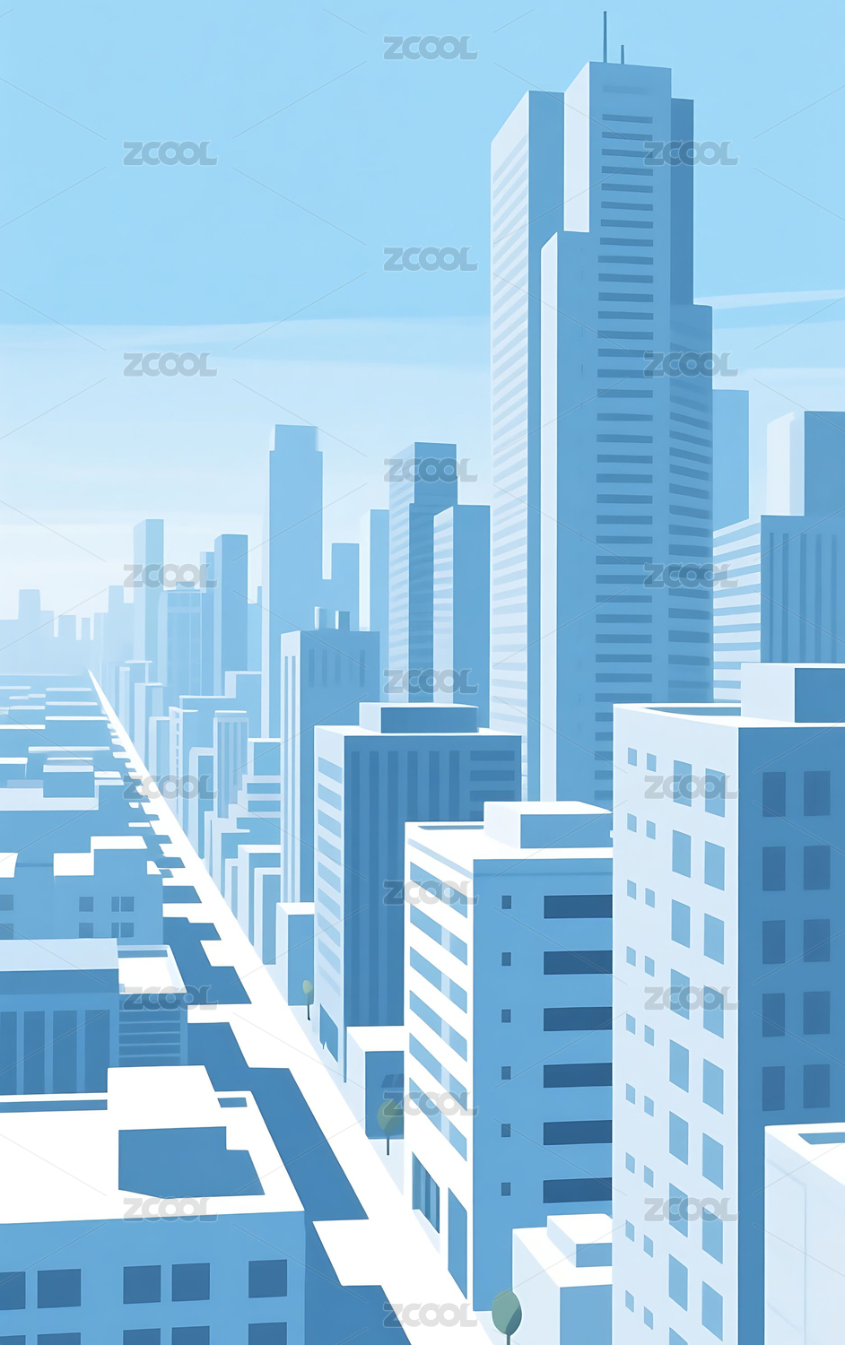蓝紫色现代城市街景