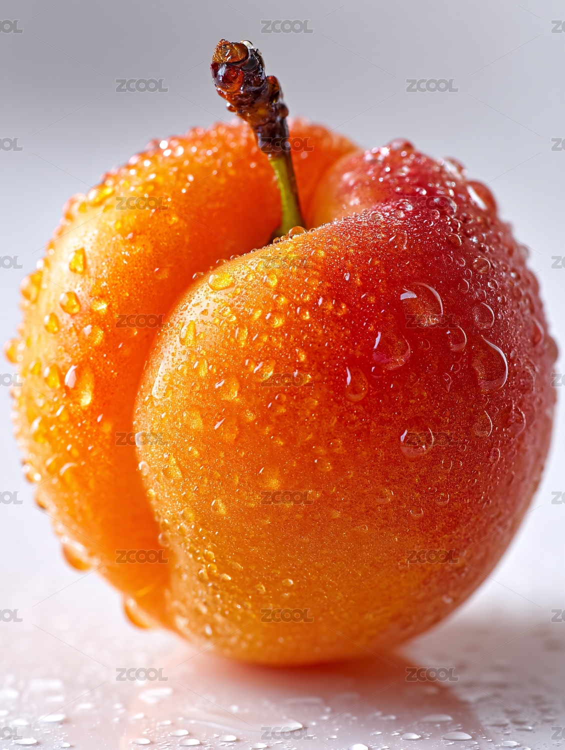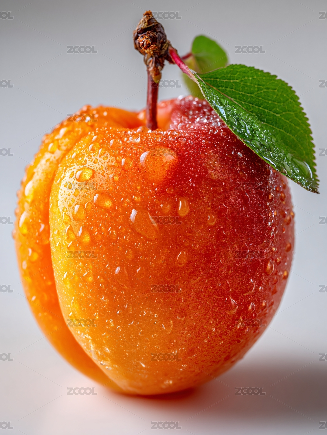 光泽,背景,白色,水珠,绿叶,果柄,圆润,饱满,新鲜,杏子