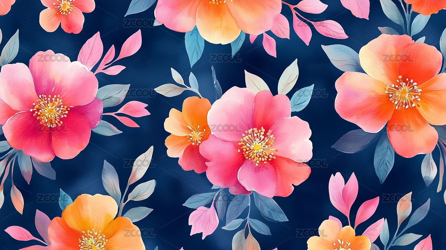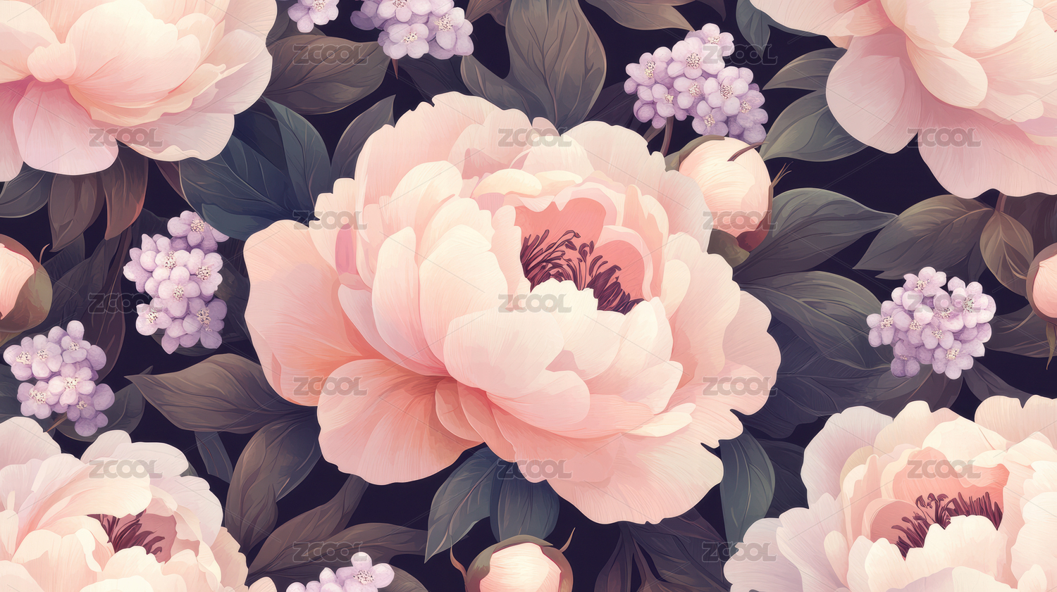 粉色黄色牡丹花植物水彩无缝图案纹理