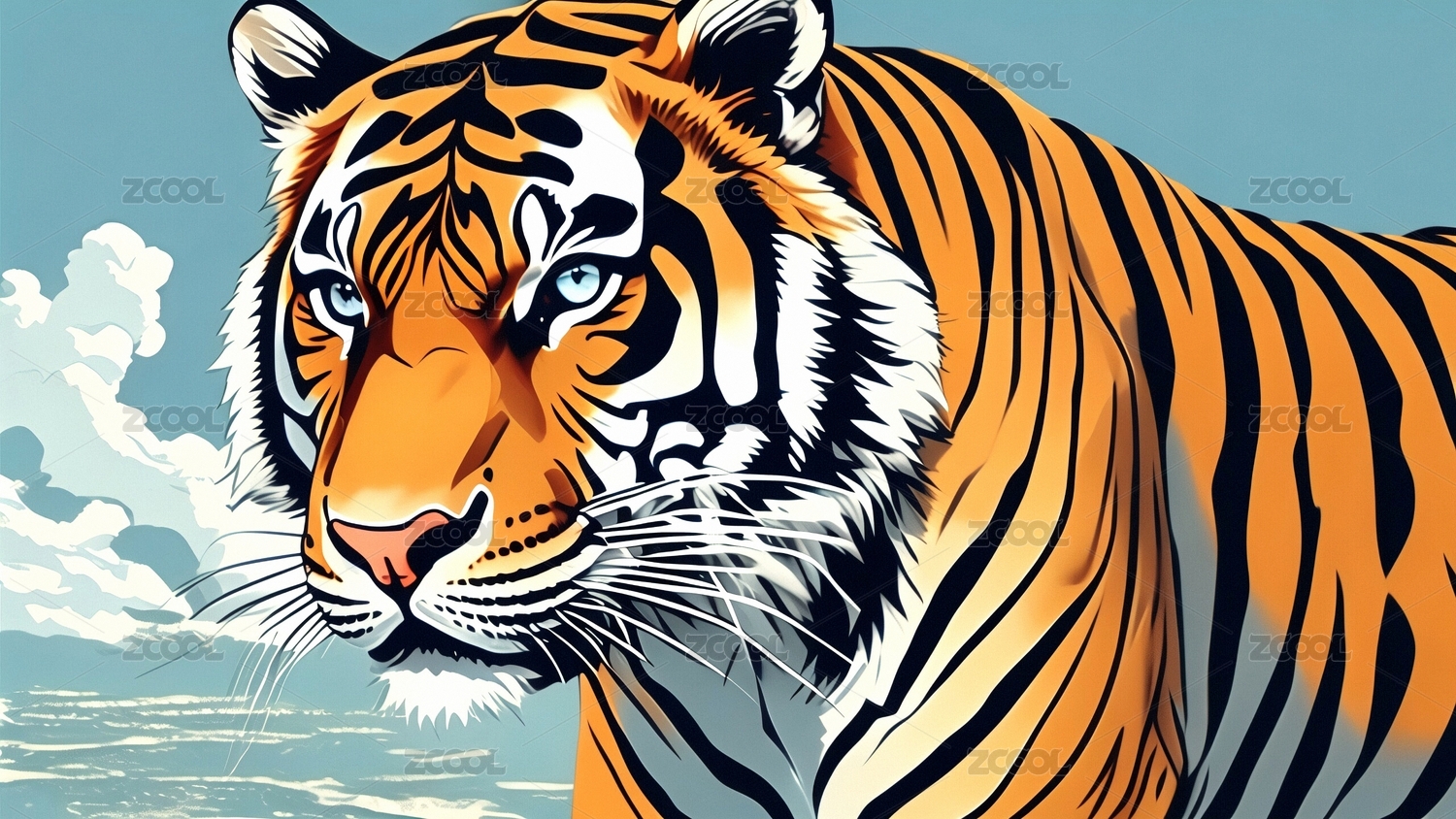 水彩老虎