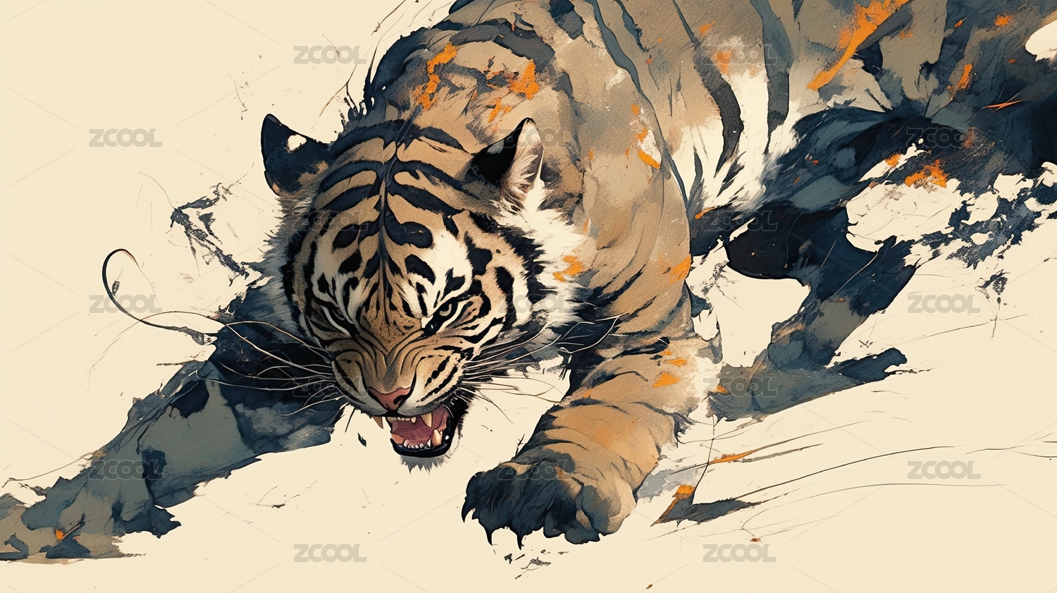 老虎水墨画