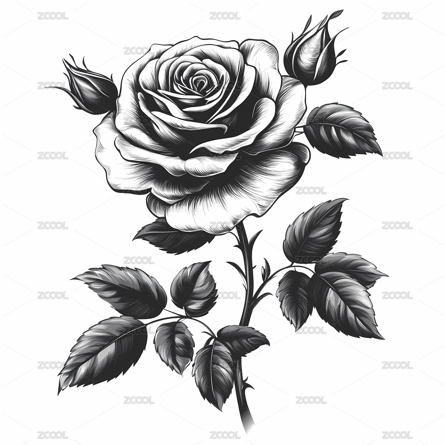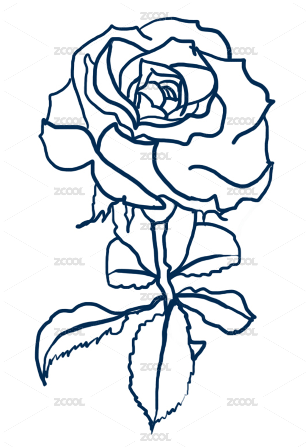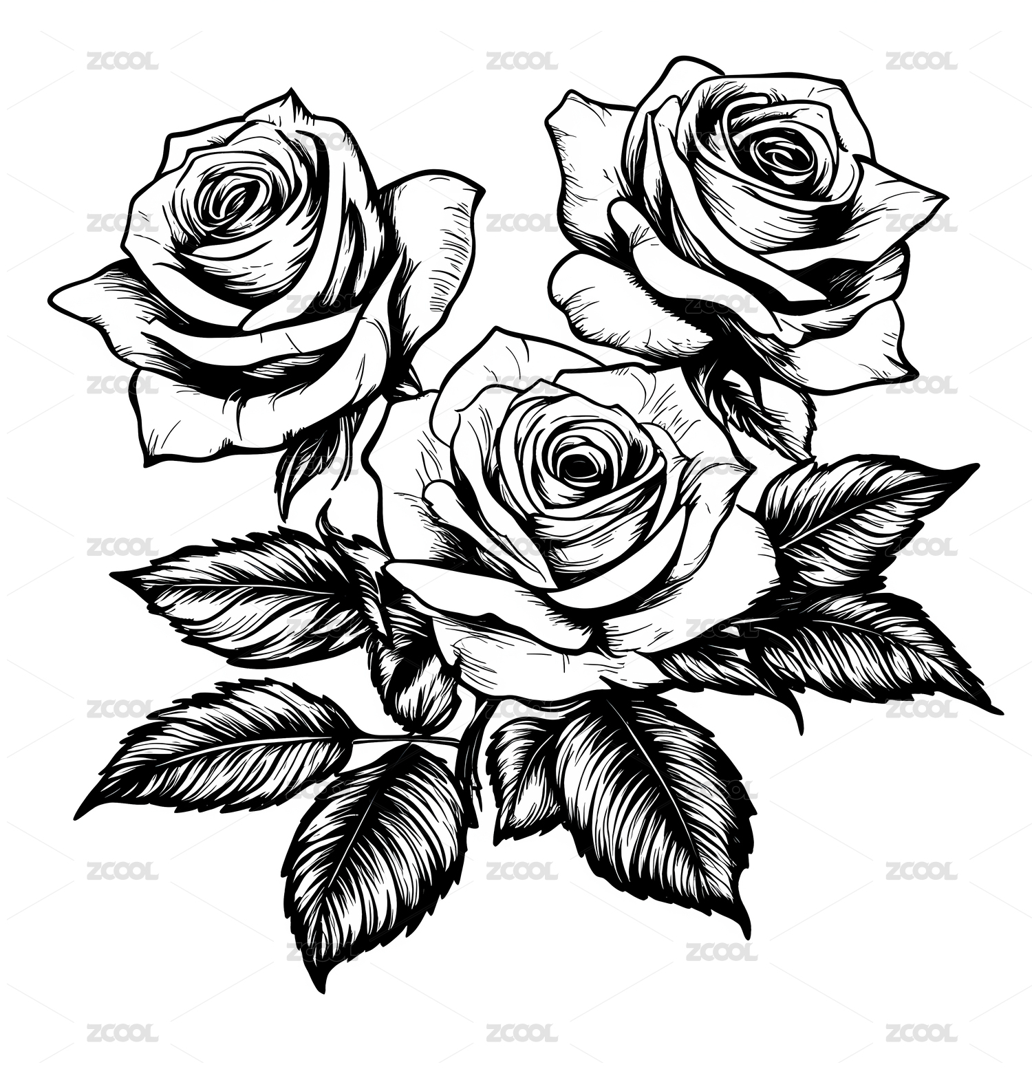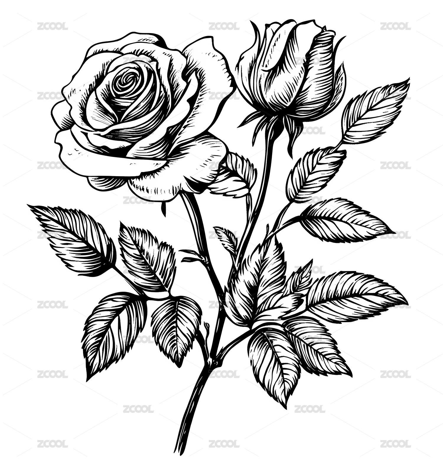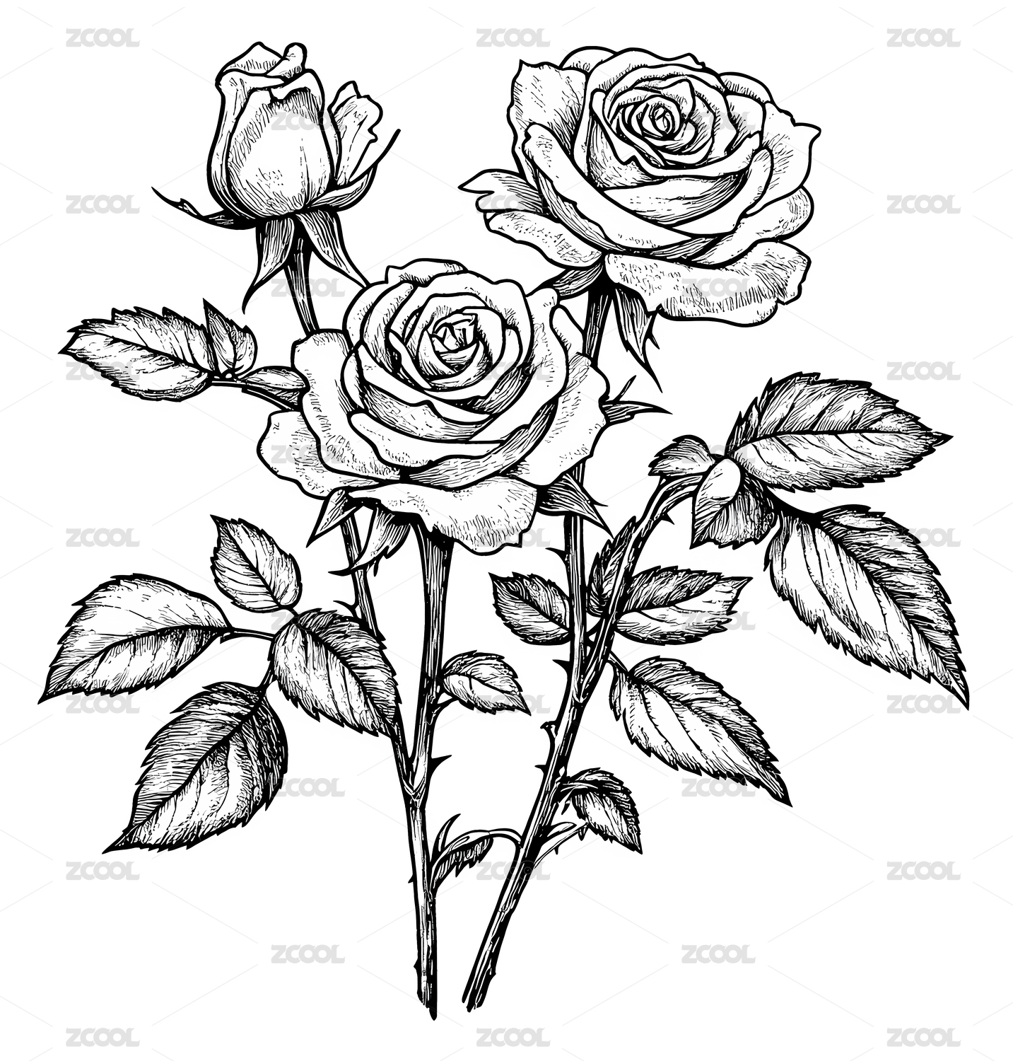 插画,艺术,清新,花卉,植物,线条,玫瑰,素描,花束,绽放