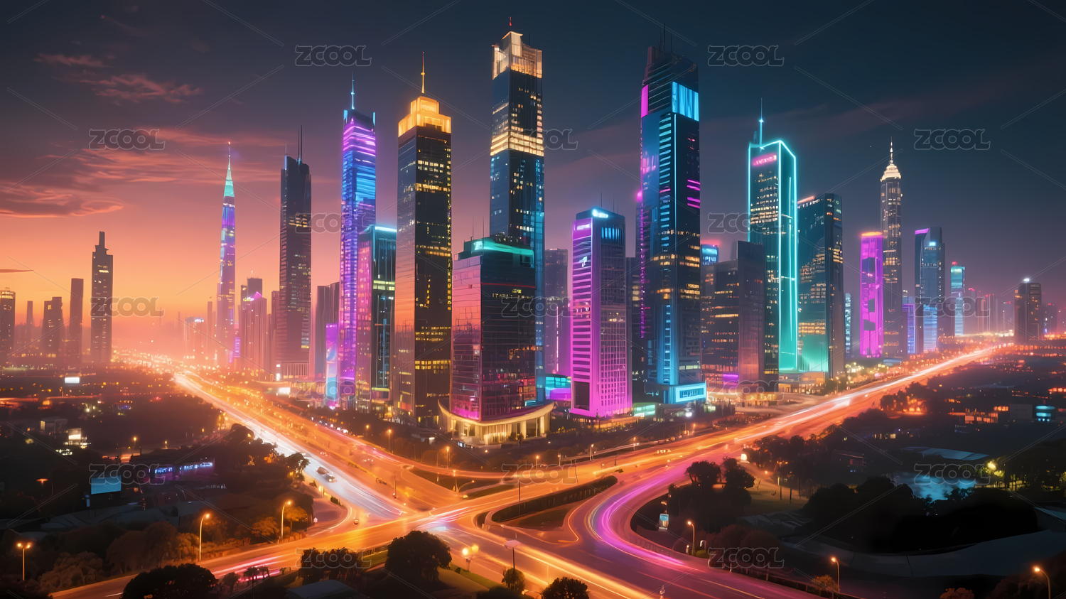 灯光,城市,夜景,高楼,街道,建筑,蓝光,都市,大厦,辉煌