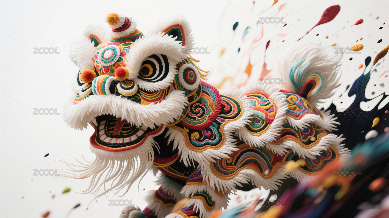 苏绣刺绣彩色液态颜料敦煌醒狮抽象画